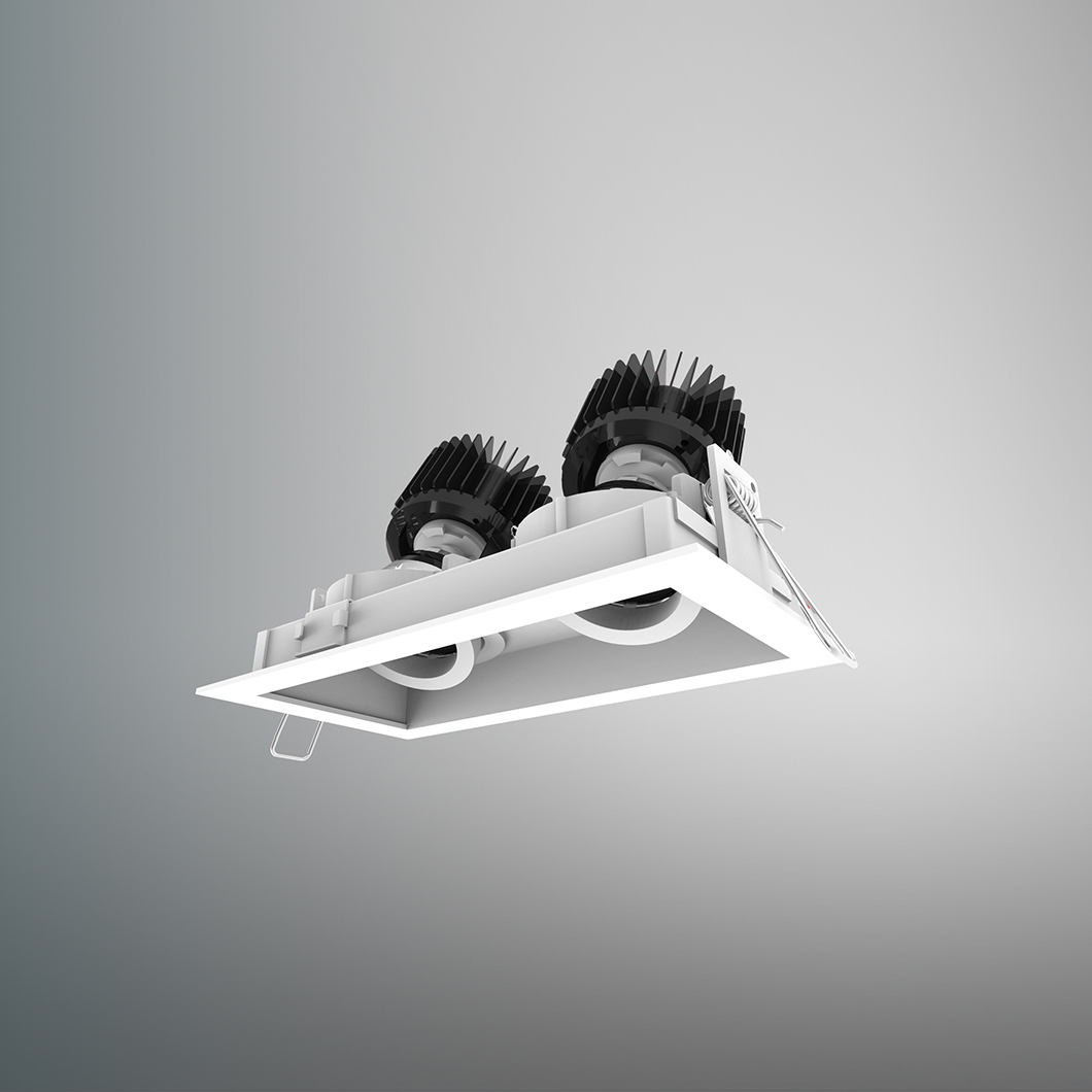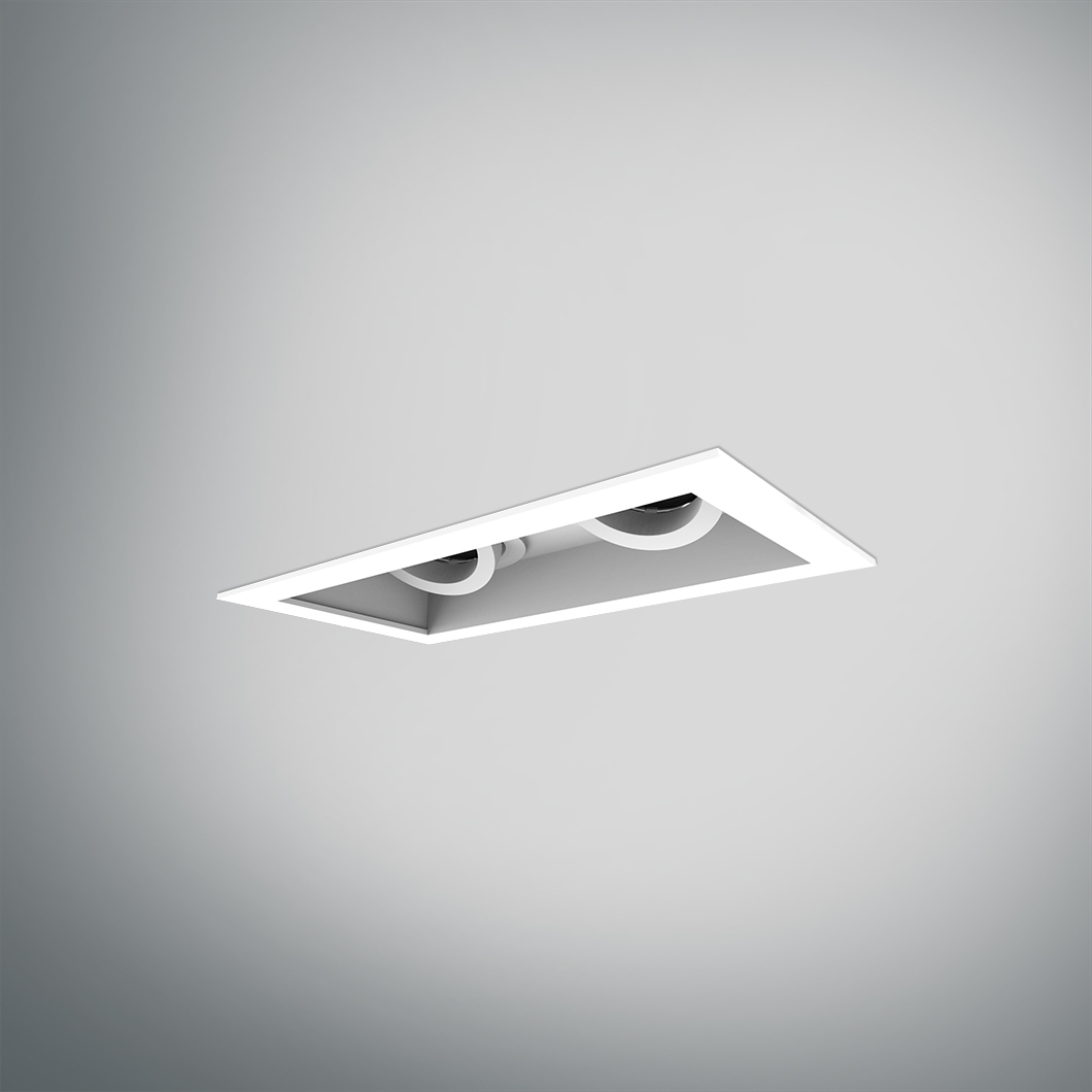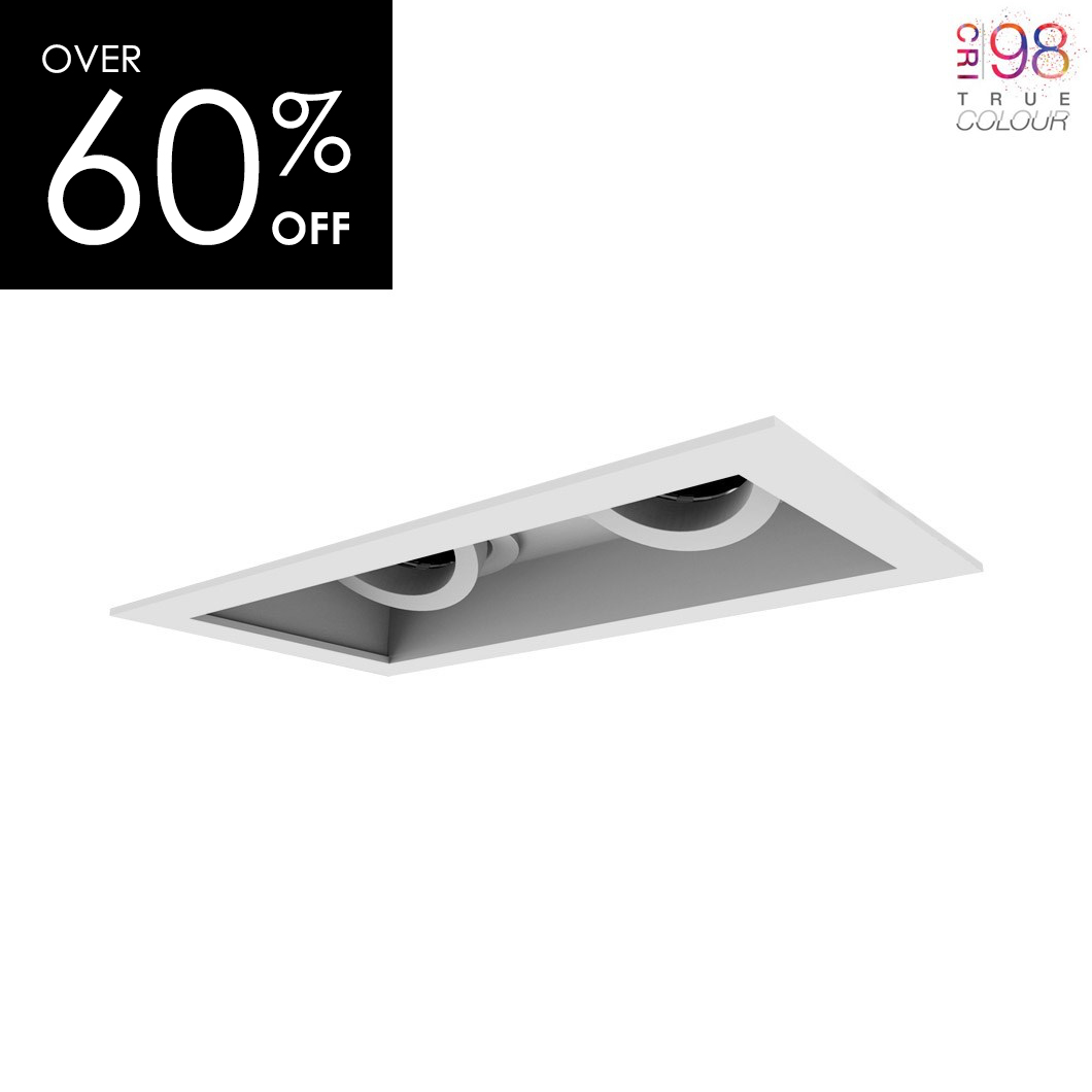 Eiger 2 LED square adjustable recessed downlight has a dual lumen output of over 2x 1400lm - making it perfect for installation in residential projects. As part of our True Colour range, the CRI 98 LED chip, brings out the real rich colours when lighting artwork, photos or bright furniture. The twin light engines are removable through a simple twist mechanism, which allows for easy maintenance. 15º or a medium 36º beam angles are available. Die-cast aluminium luminaire with steel housing. Adjustable tilt of 24º and 355º rotation. Heat sink in forged aluminium for optimum heat dissipation. Reflector in plastic PC. In white or black. Our downlights are fire rated as standard, and have lasted over 60 minutes in independent tests by Cambridge Fire Research. The Eiger range is fully dimmable, supporting 0-10V, TRIAC or DALI drivers.