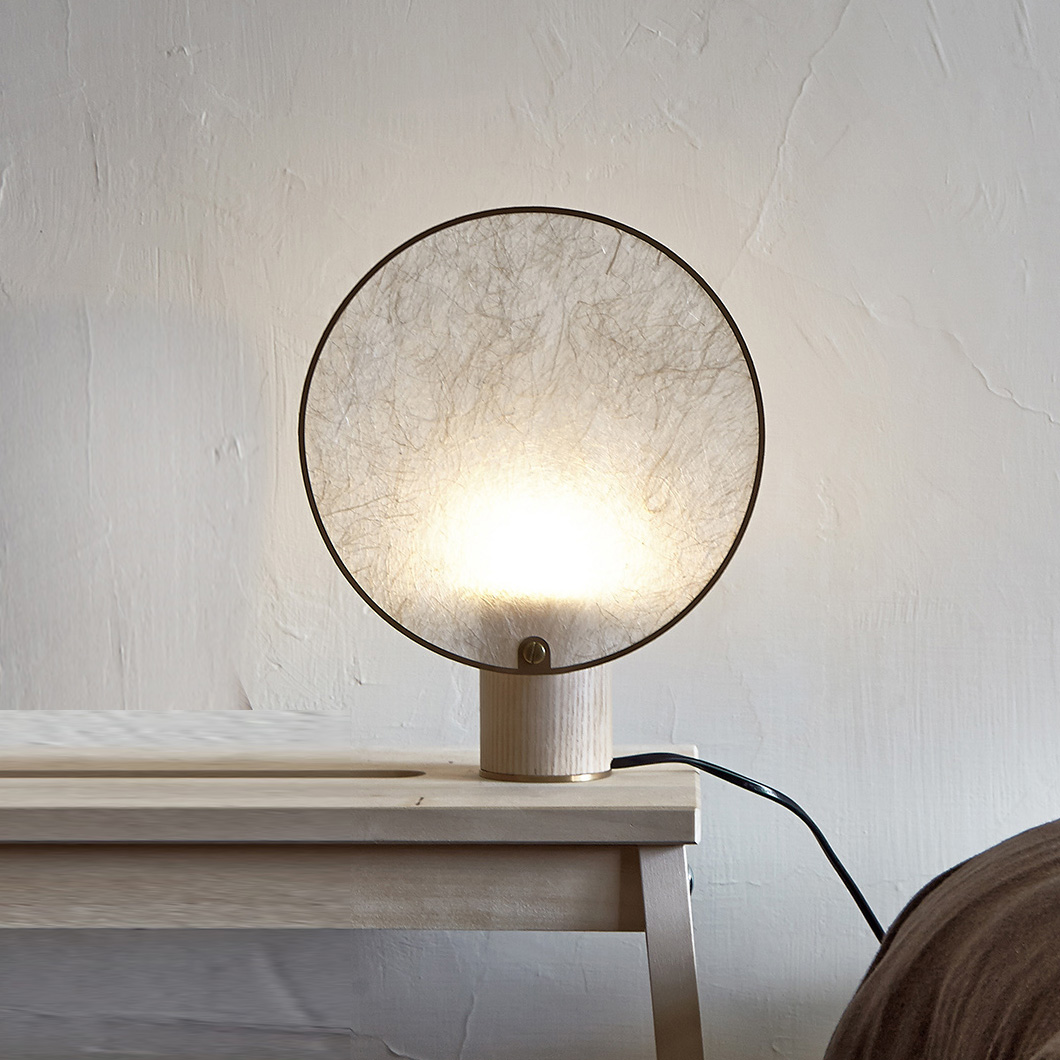 The version available is the round-shaped shade version with a sabi ivory finish.