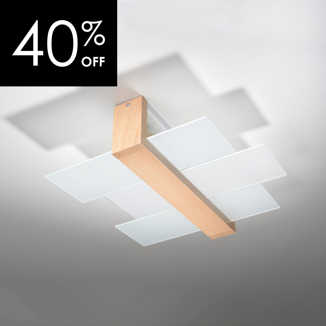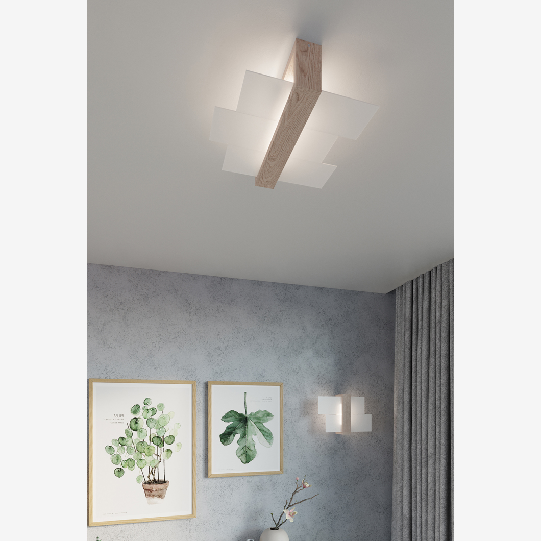 Equilibrium is an ultra-modern, abstract ceiling light designed for both contemporary and Scandinavian style interiors. With a stunning design consisting of panels balancing on a singular linear wooden board, this ceiling light showcases the idea of stability & steadiness – hence its’ name. Masterfully crafted from wood and glass, Equilibrium is magnificent in its intriguing structure. Thanks to a completely unique design, there is no established ‘home’ for Equilibrium. When installed in a modern space, this ceiling light will help to accentuate any kitchen, hallway, bedroom and living room.