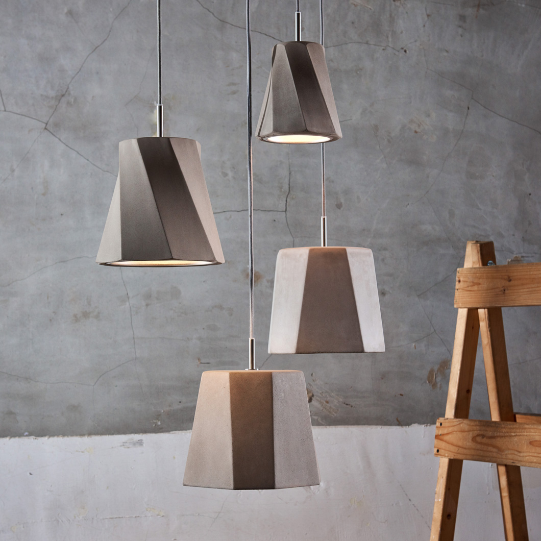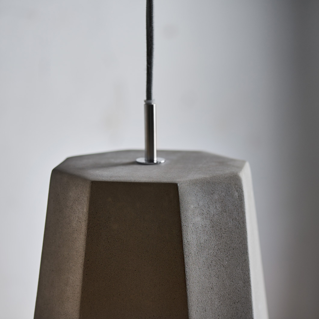 The Seed Design Castle Rock Pendant is an industrial, minimalist designer suspension light and part of the popular Castle range. Crafted from concrete, an energy efficient material compared to metal or glass and filled with rich texture, Castle can be crafted with green living in mind and is perfect for those who are looking for an eco-friendly pendant in a modern scheme. The inner silver reflector diffuses the light to a soft and gentle gleam. Castle looks great whether placed individually over a coffee table or in a linear row over a kitchen island or even in a cluster down a staircase. Canopy in chrome. Textile cable in grey at a max drop of 2 metres. Lamp not included.