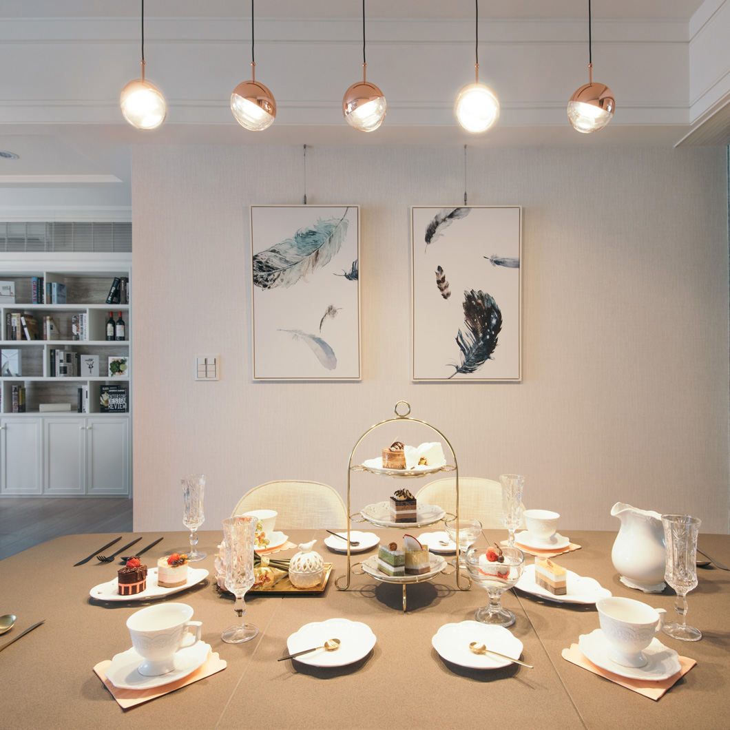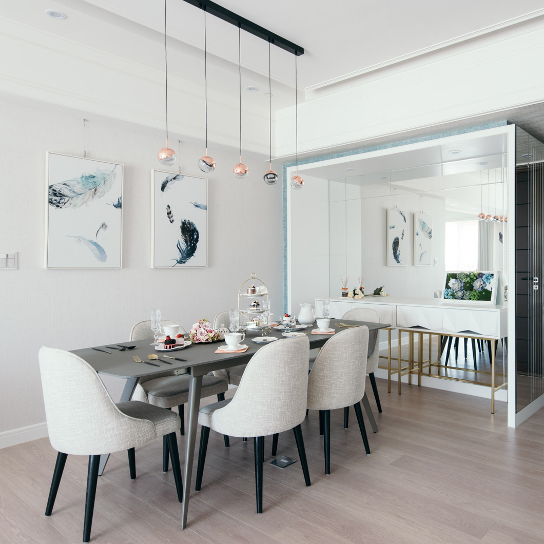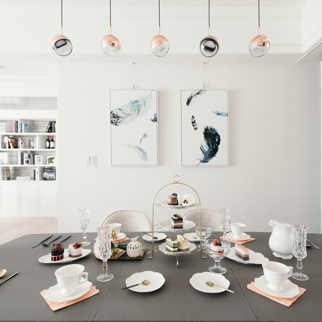 The Seed Design Dora PL5 Pendant is a linear row 5 drop suspension variant of the Dora family. With a black ceiling rose bar, the shades are all evenly spaced in a line which is perfect for hanging above ceiling islands or dining tables. Interact with Dora as if you are a child again, the shades can be rotated up to 35 degrees, changing the direction of light. Each cable has a maximum drop of 200cm giving you the freedom to shorten each to any length, whether you want a uniform row or random formation, there’s versatility to the way your pendant is showcased. The stylish chic globe diffusers consist of a contemporary copper side and glass side which projects the cutting edge warm white integral LED light, creating a cosy inviting atmosphere in your home. Complete with a built-in dimmable driver.