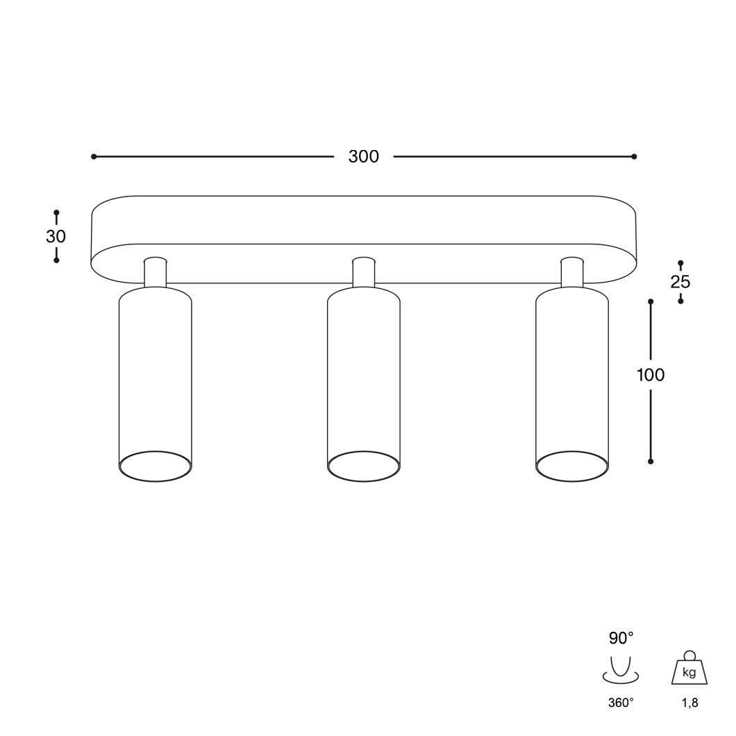 Ceiling base dimensions: L300 x W50 x H30mm