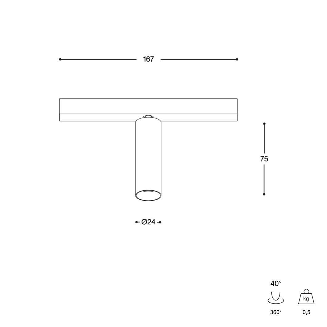 The Acrotrack Micro (Ø24 x 45 mm) is joining the acrotrack and actrotrack mini. Fully adjustable with a 90° tilt, Acrotrack is a minimal and timeless design that fits on different types of 48V tracks. Track of choice (trimless, surface, etc) sold separately. A recessed lens provides a glare-free lighting experience, making it perfect for showcasing your artwork without any unwanted distractions or for spaces with slightly lower ceilings. With three different beam angles to choose from and an output up to 300 lumen, you can easily adjust the lighting to suit your needs. Comes with an invisible hinge design.