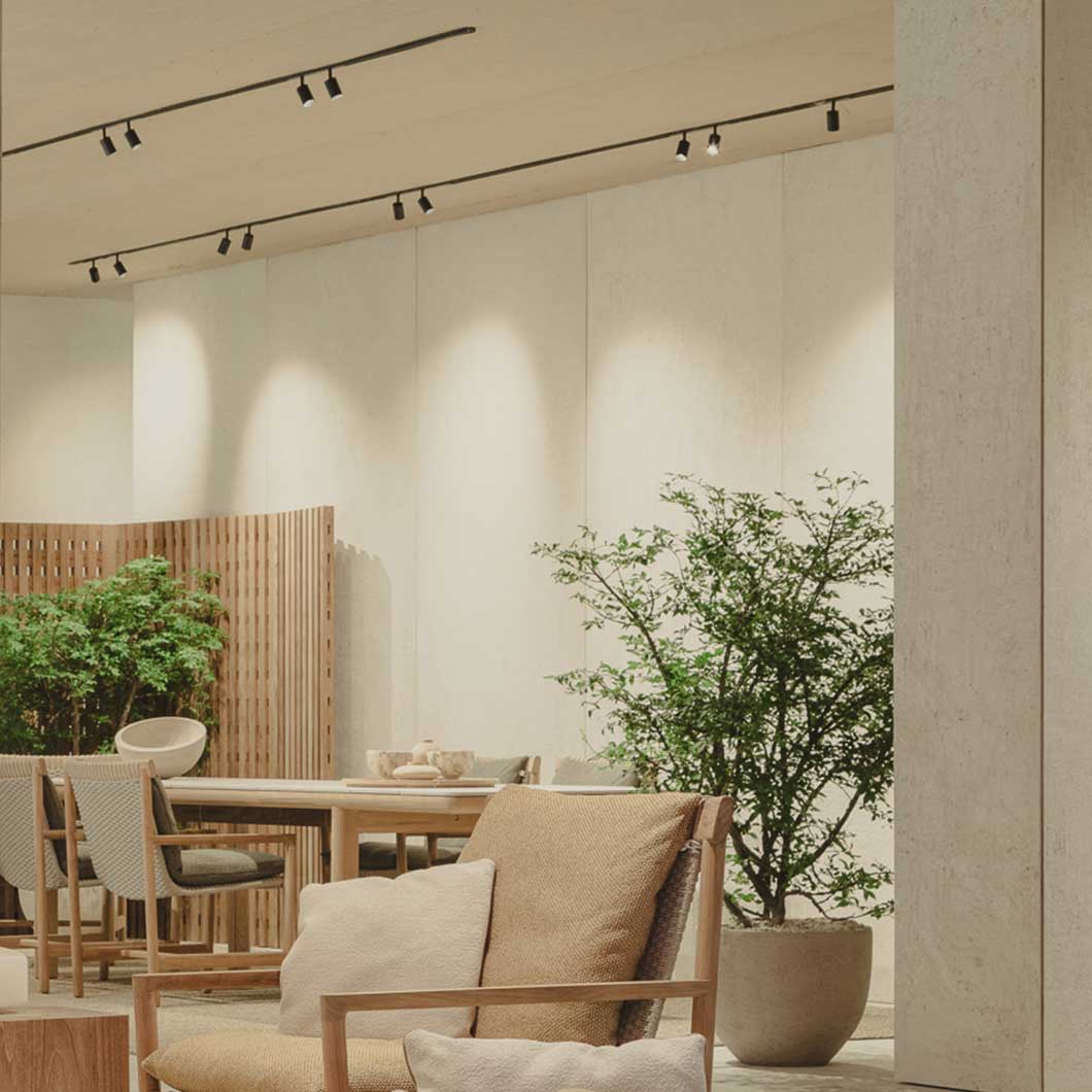 Acrotrack Mini is a timeless classic fixture that fits on different types of 48V tracks. Track of choice (trimless, surface) sold separately. A recessed lens brings you a glare free light experience. Comes with an invisible hinge. Show what you want, hide what you need.