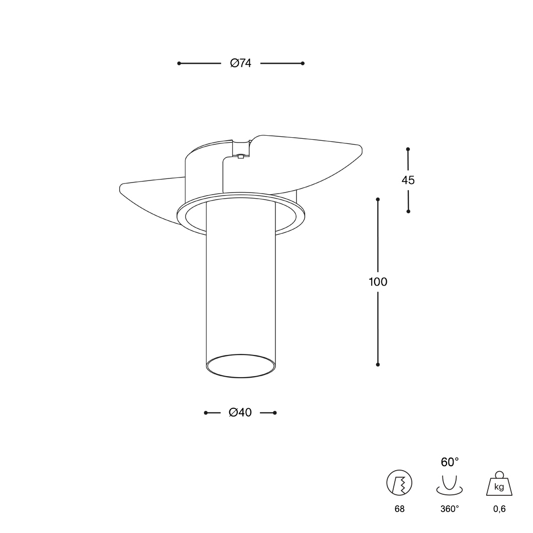 Cutout dimensions: Dia.68mm