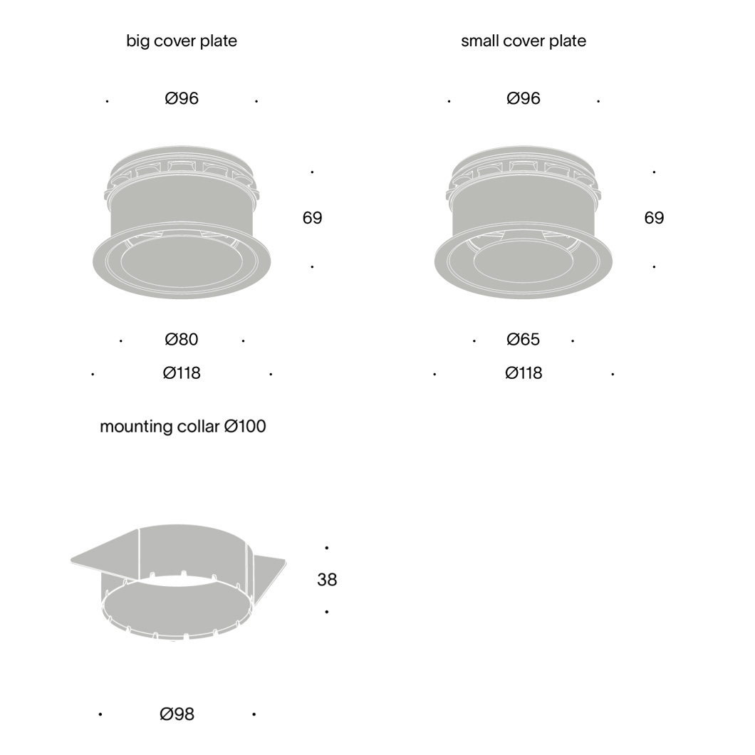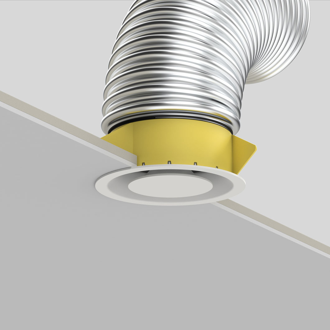 This accessory enables the installation of the Pradovent Ø100 Trim in gypsum ceilings when connecting to Ø100 flexible ducts.