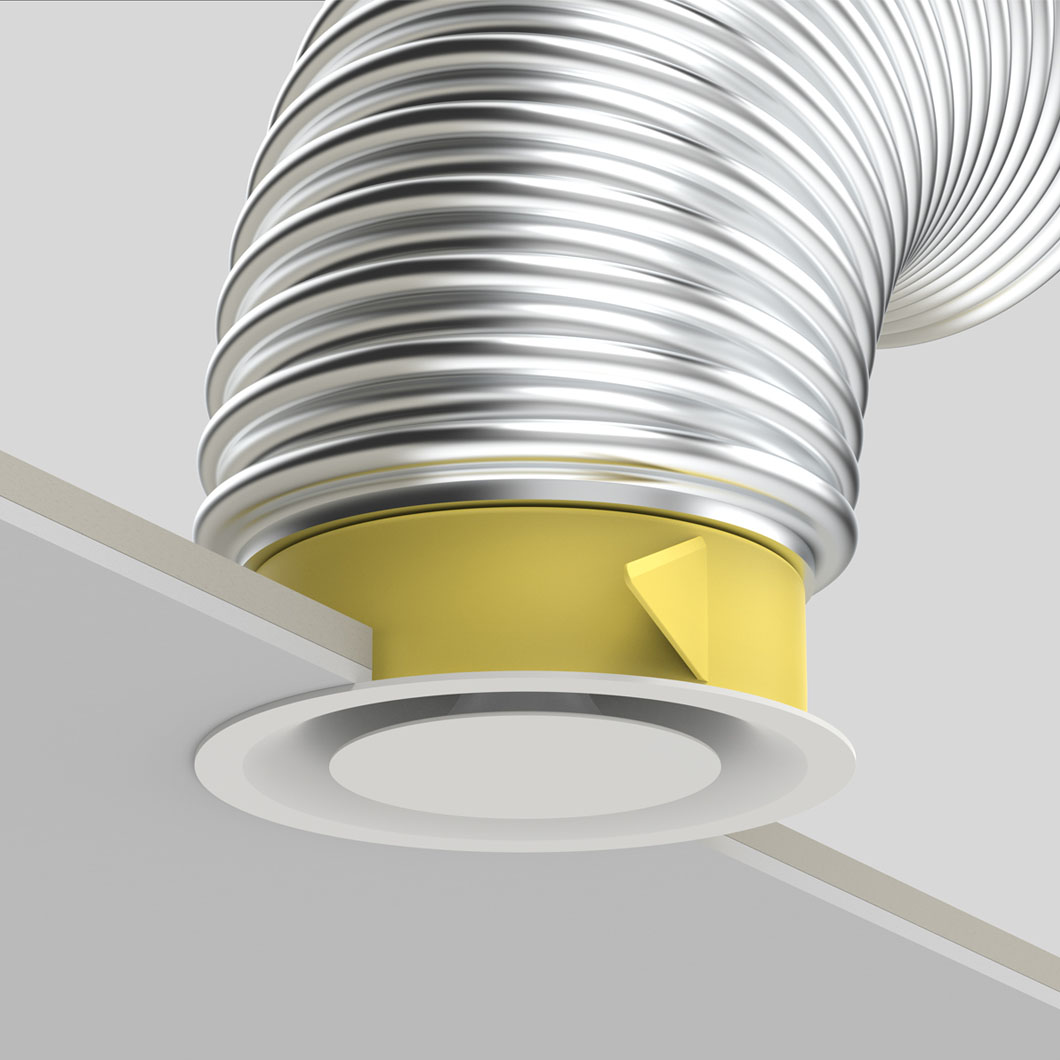 This accessory enables the installation of the Pradovent Ø125 Trim in gypsum ceilings when connecting to Ø125 flexible ducts.