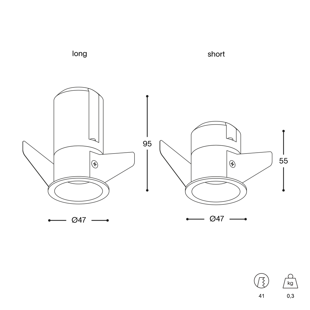 - The short one delivers over 500 lumen and can be installed in ceilings with only 55mm of installation depth.