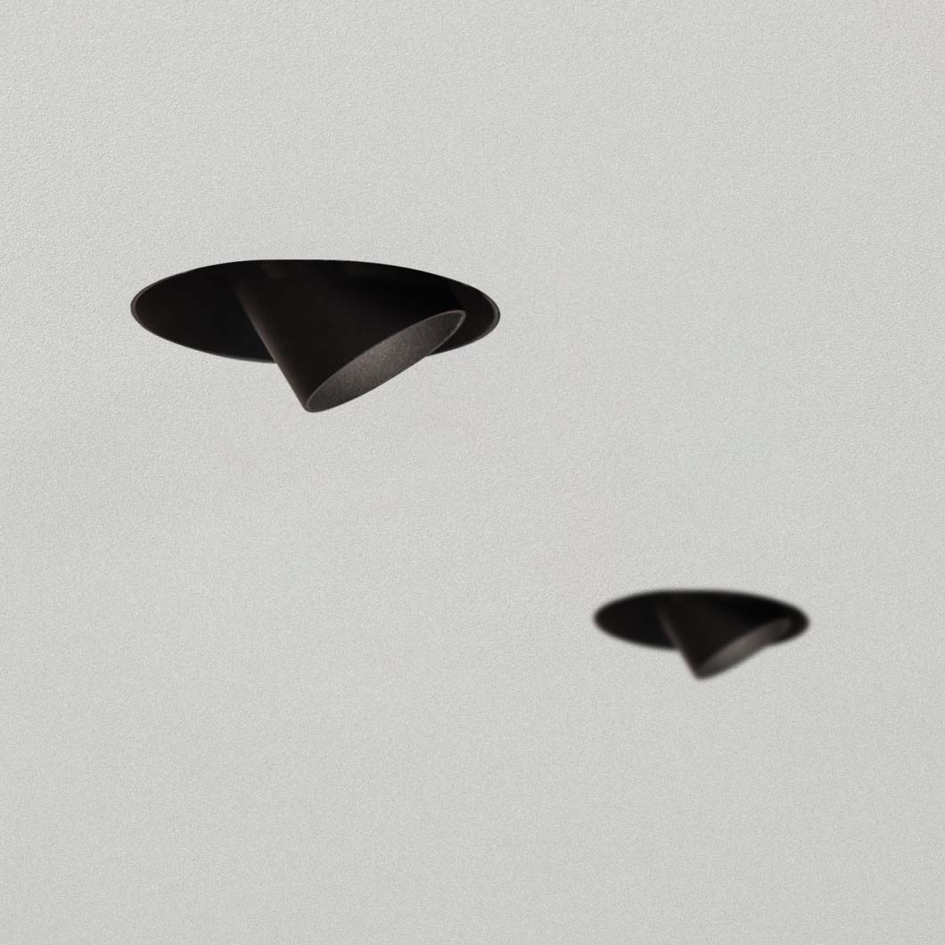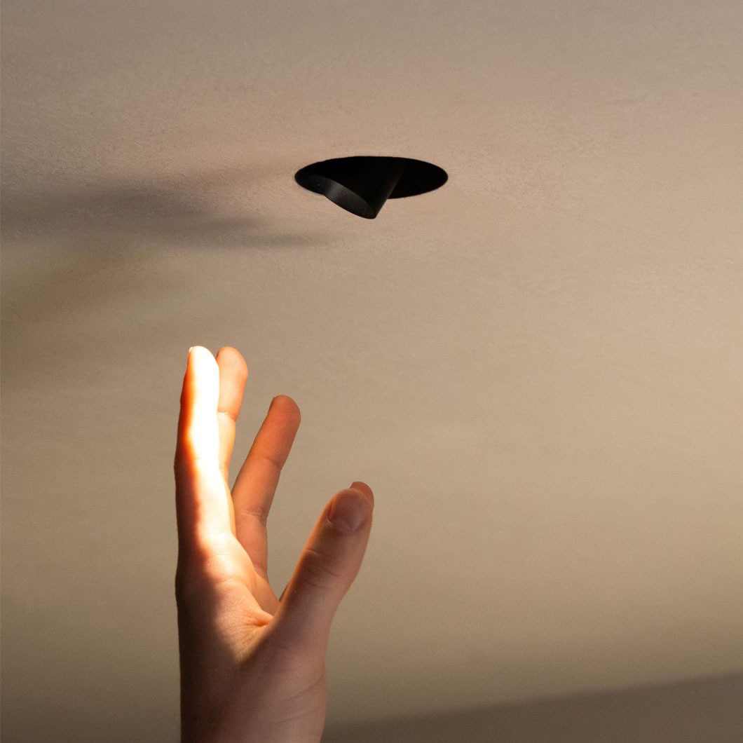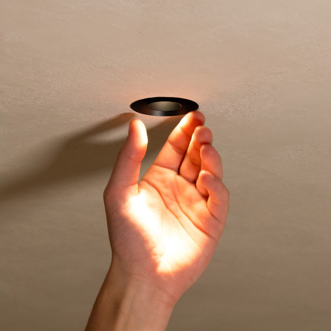 The next step up from the Ø57mm Trimless Adjustable Spot, the Trimless Spot Adjustable Plaster-In Downlight 2.0 by Prado now offers an increased tilt range of up to 45° and now delivers up to 750 lumen. Retaining the recessed glass lens for glare free performance, the new features make version 2.0 perfect as a downlight or to highlight art, whilst still minimalistically disappearing into the ceiling.