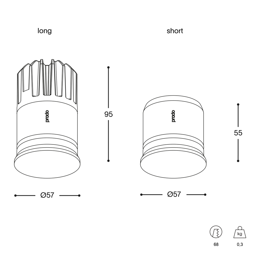 - The short version delivers over 800 lumen, and with a height of 55mm can be installed in ceilings with smaller installation depths.