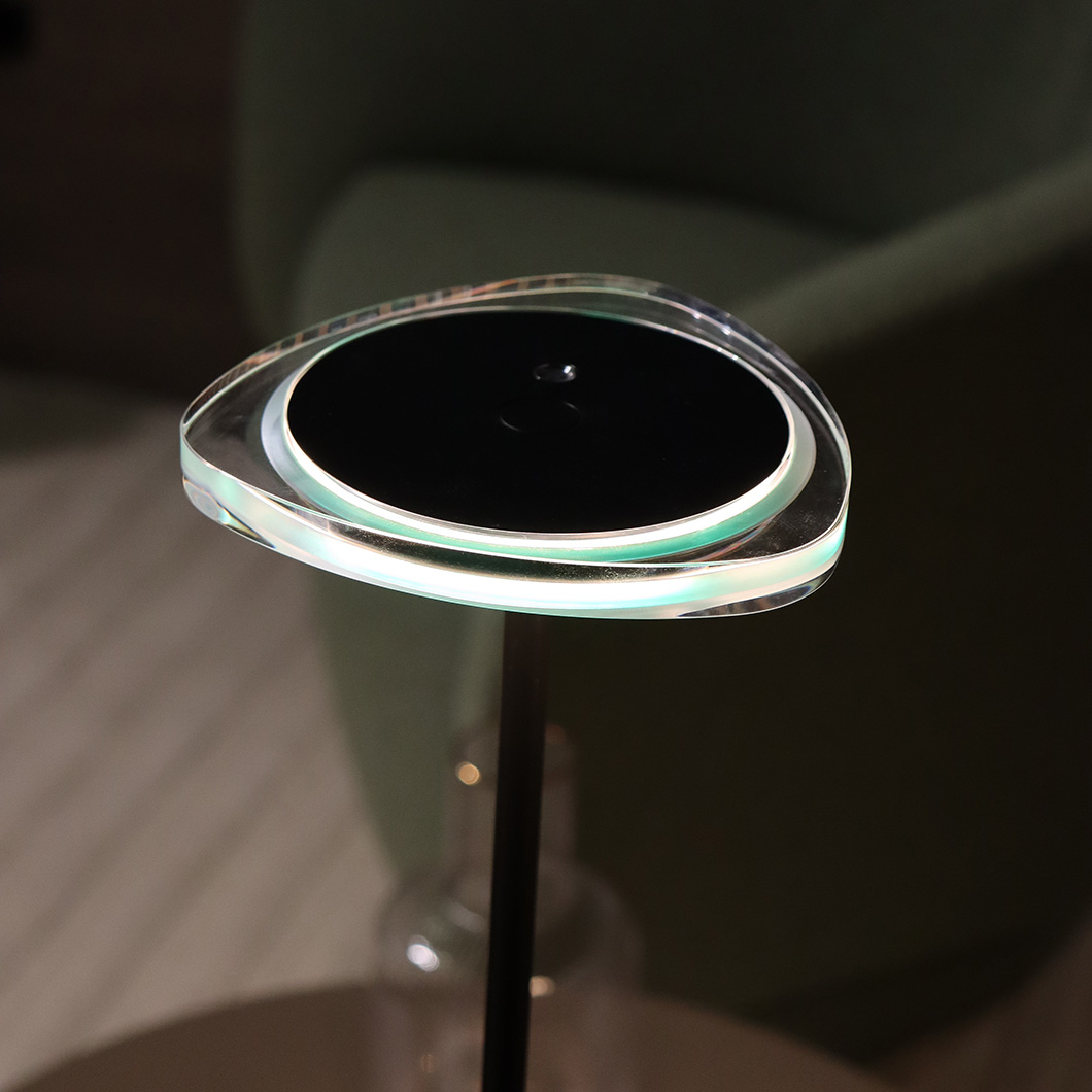 At 42cm tall, CD LED is an effective source for illuminating your desired space and creating a calm, relaxed ambience. Choose between three soft, geometric shapes for the lamp head: round, square, or triangle. You can also infuse a dash of colour into the table lamp with a coloured PMMA ring, or maintain the simplicity of CD LED with the transparent option.
