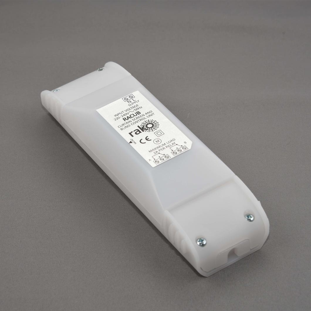 The Rako RACUB in-line RF relay module for motorised curtains, screens and blinds.