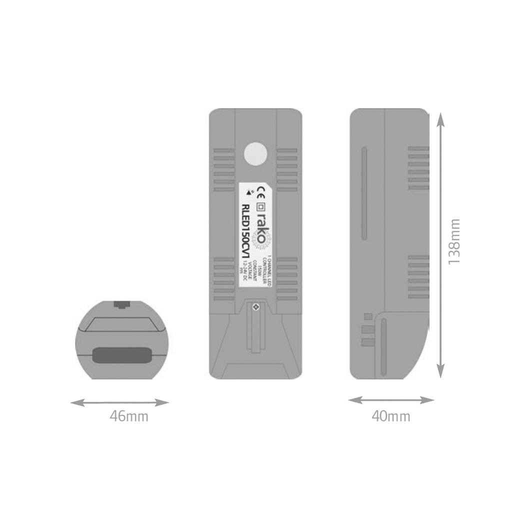 - In-built RF receiver and Rako processor for control of single channel constant voltage LED fittings