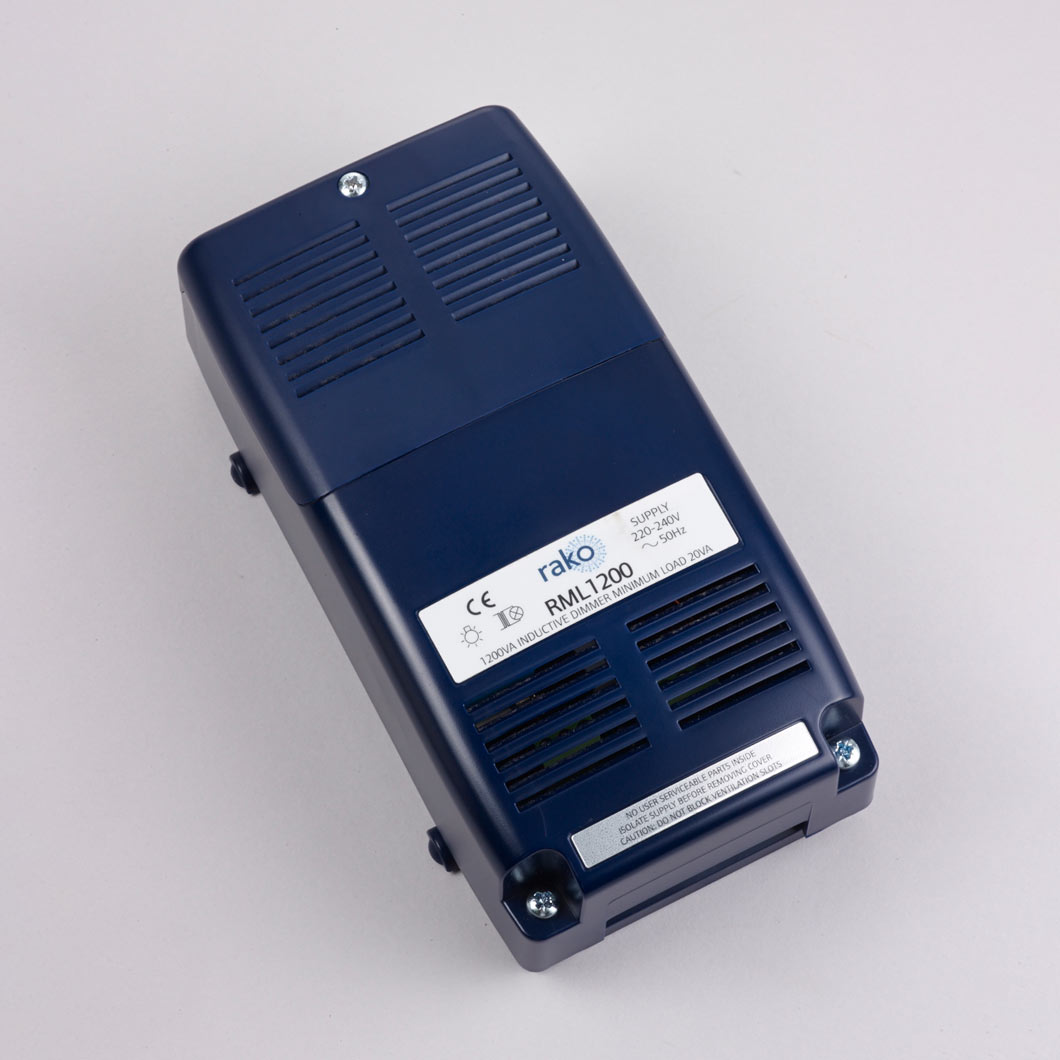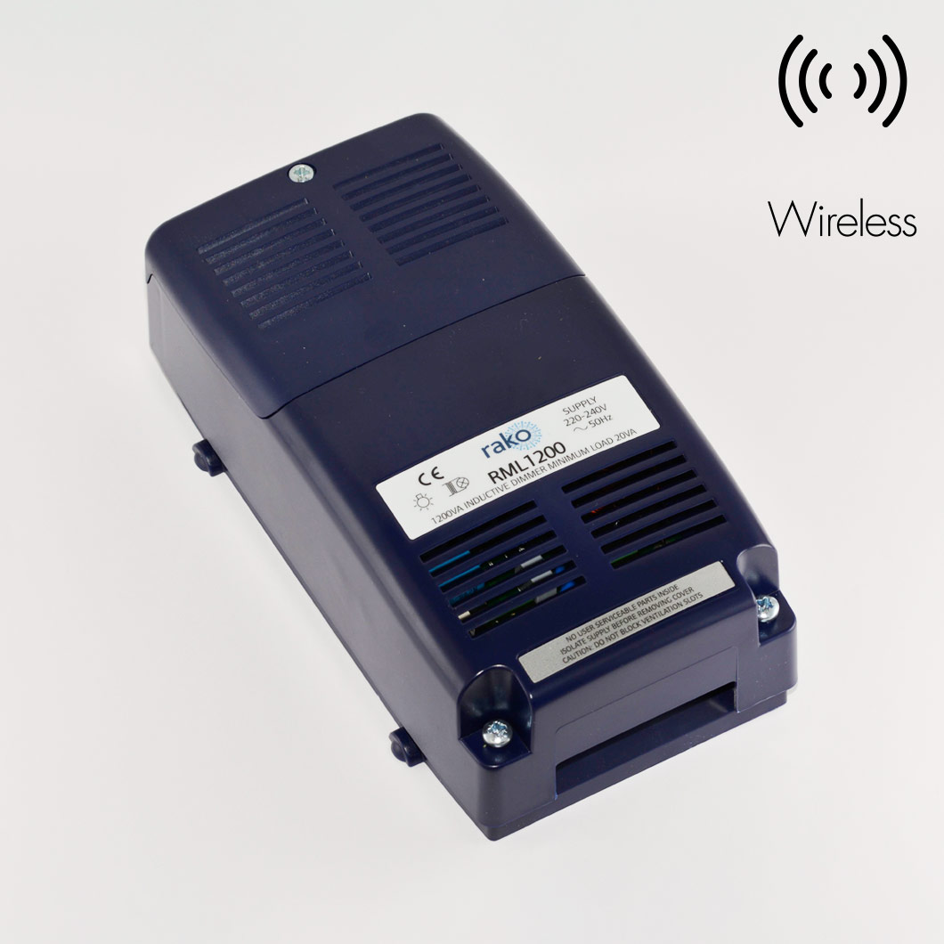 The Rako RML1200 wireless in-line RF dimmer is designed for tungsten, low-voltage halogen and other leading edge dimmable loads.