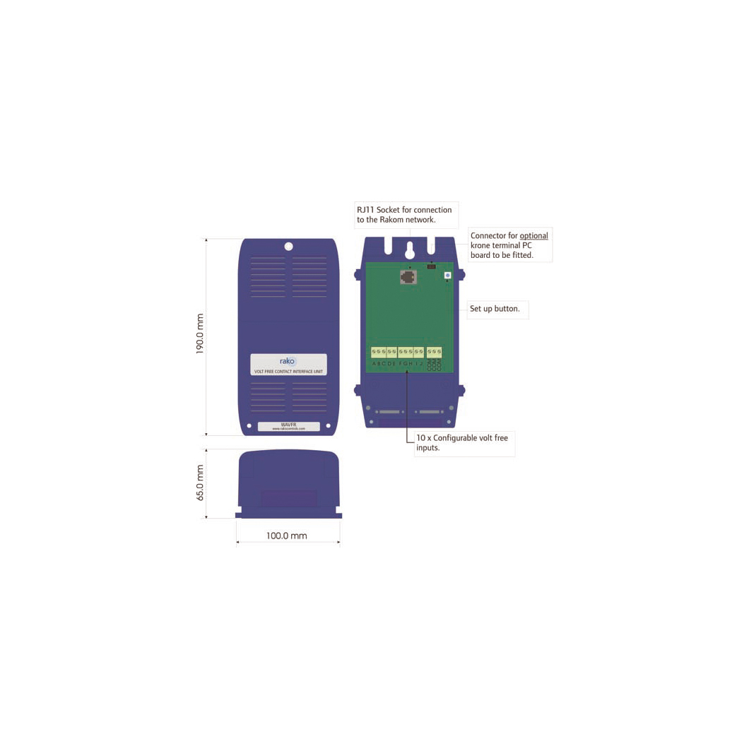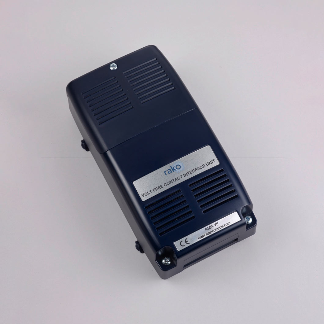 The Rako RMR-VF is an interface unit to convert volt-free contact signals into Rako wireless RAKOM messages.