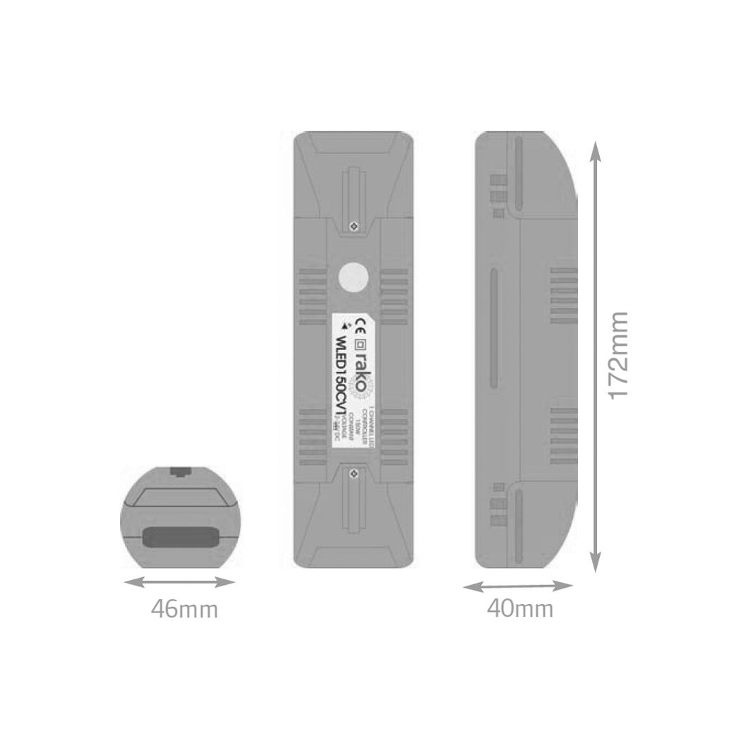 - A compact single channel 150W constant voltage LED dimmer with in-built wired receiver and Rako processor for control of single channel constant voltage LED fittings.