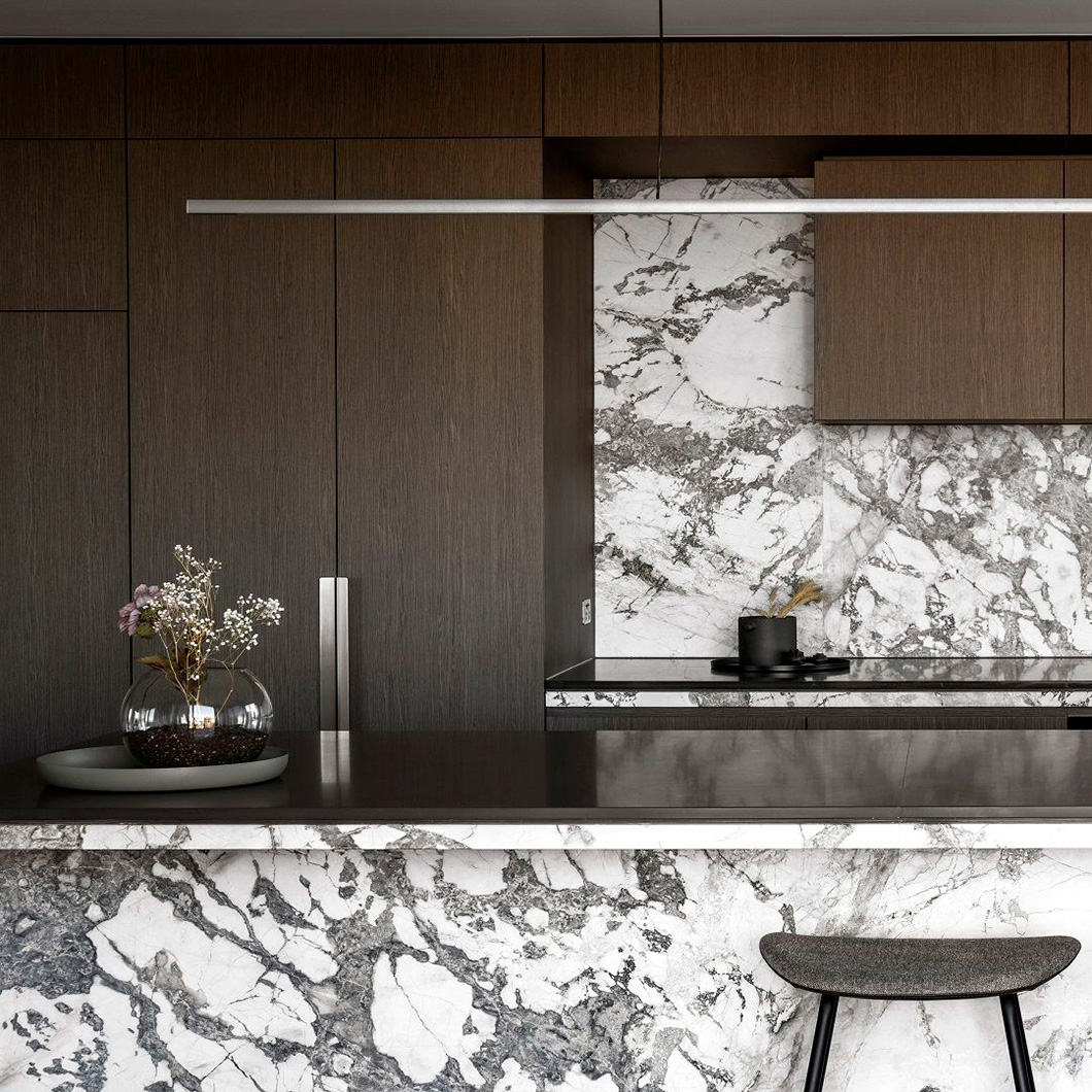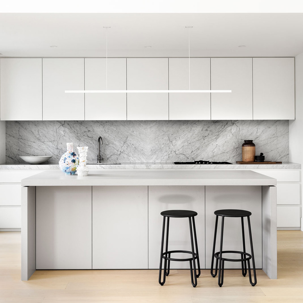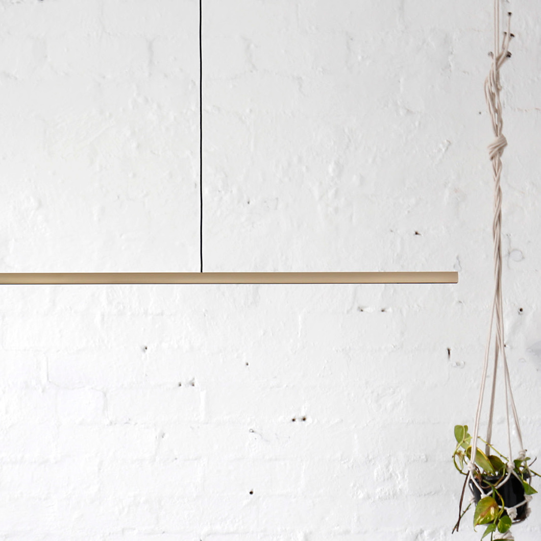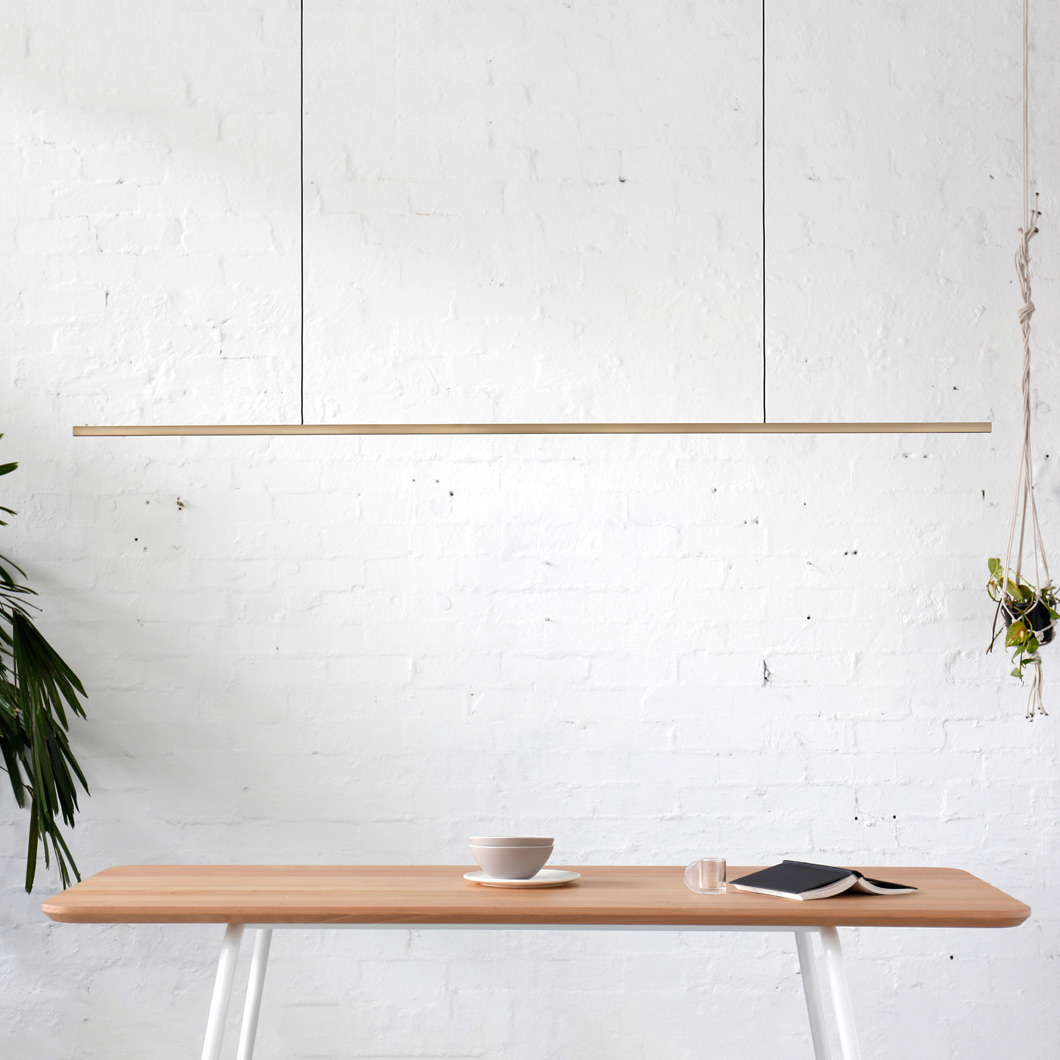 The Rakumba Highline Pendant is an elegant suspension drop light. The mixture of brass with timber provides great contrast and highlights the detail in the materials. Capped off with fluted glass diffusers which soften the light and provide a more delicate glow. The suspension drop light both upwards and downwards through the integral LED technology provided. Available in 3 lengths: 1400mm, 1800mm, or 2400mm and 4 exterior finishes: black or white powder coat, satin waxed, or patina waxed.