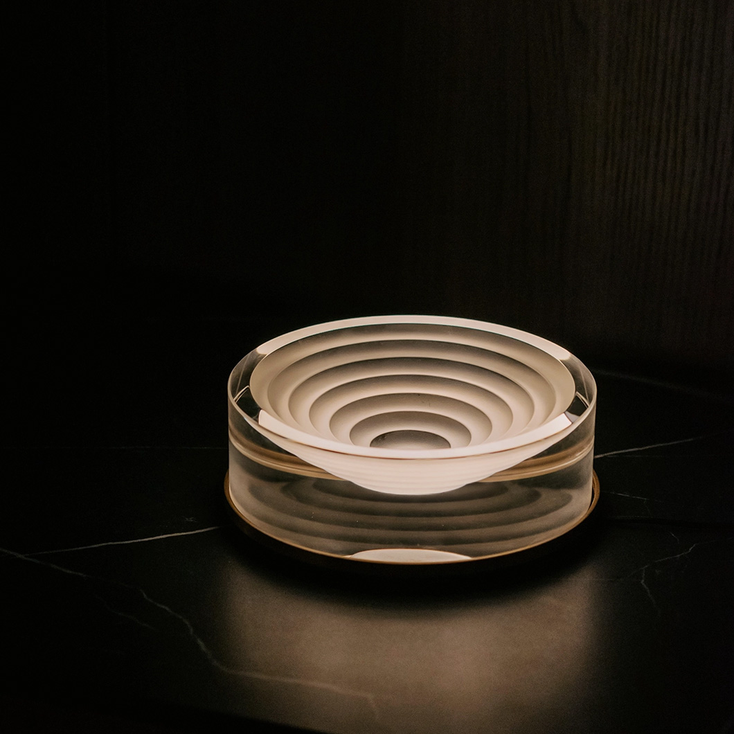 The Port Round LED Table Lamp by Rakumba utilises a glass mold for ultimate light refraction and distinctive style in this unique collection. With the illusion of an invisible light source, Port fascinates as it takes advantage of the properties of its glass structure.