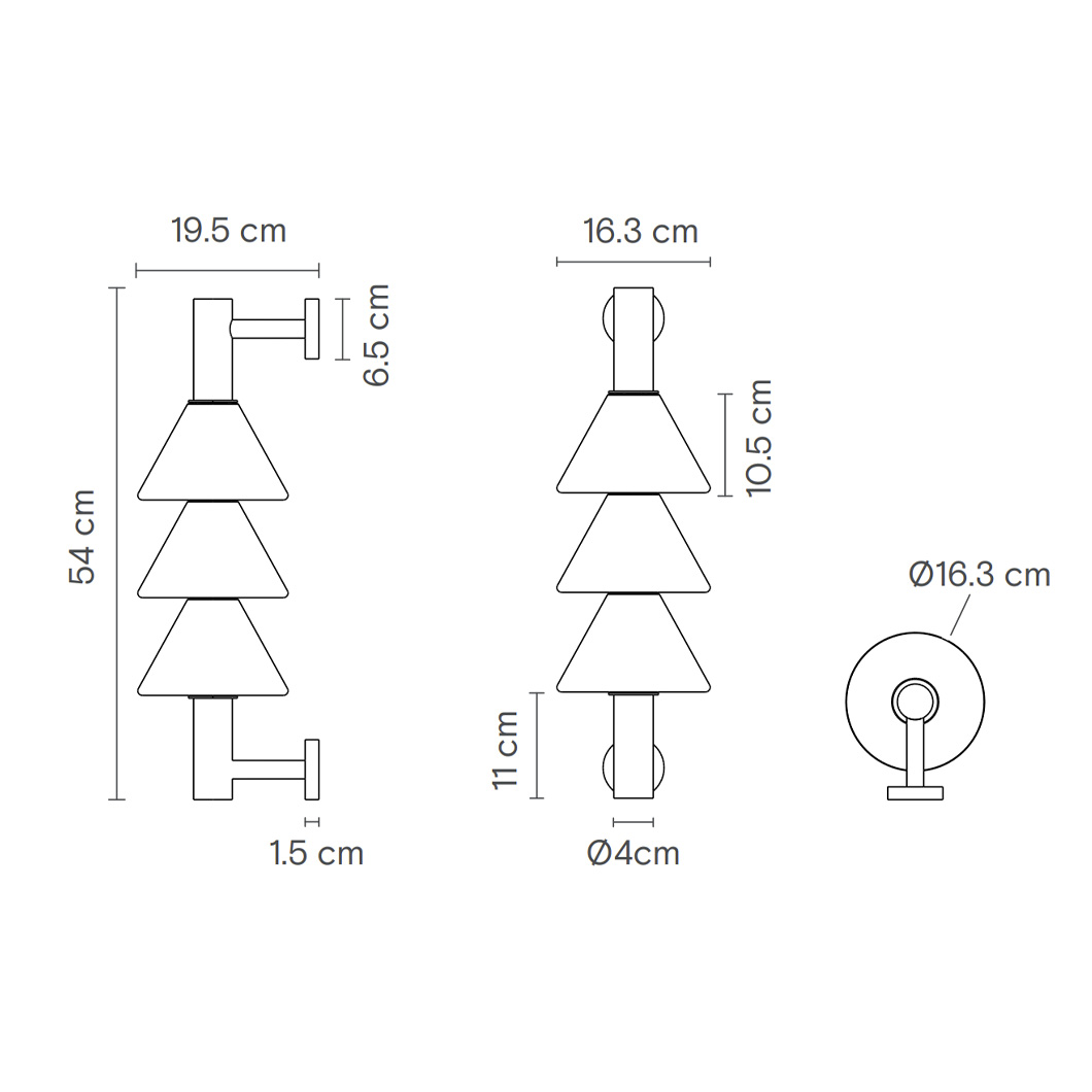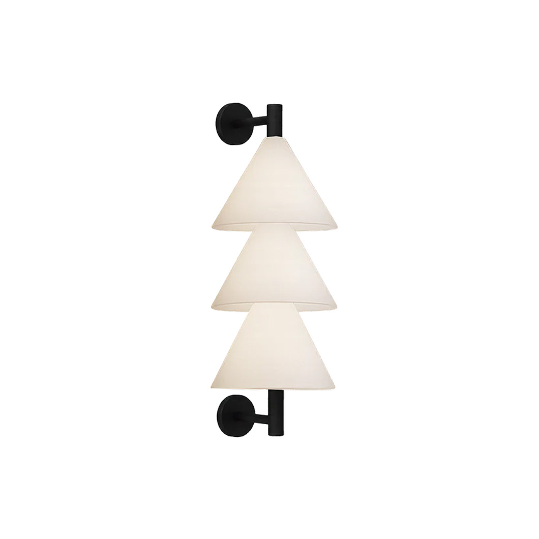 Exhibiting refined elegance in a uniquely shaped design, the Boga Wall Light offers soft, ambient lighting to enhance a contemporary setting. The vertical wall sconce features three conical blown-glass shades fixed on a matt black iron rod. Boga's IP44 rating means it can be installed in a bathroom as well as in dry indoor spaces.