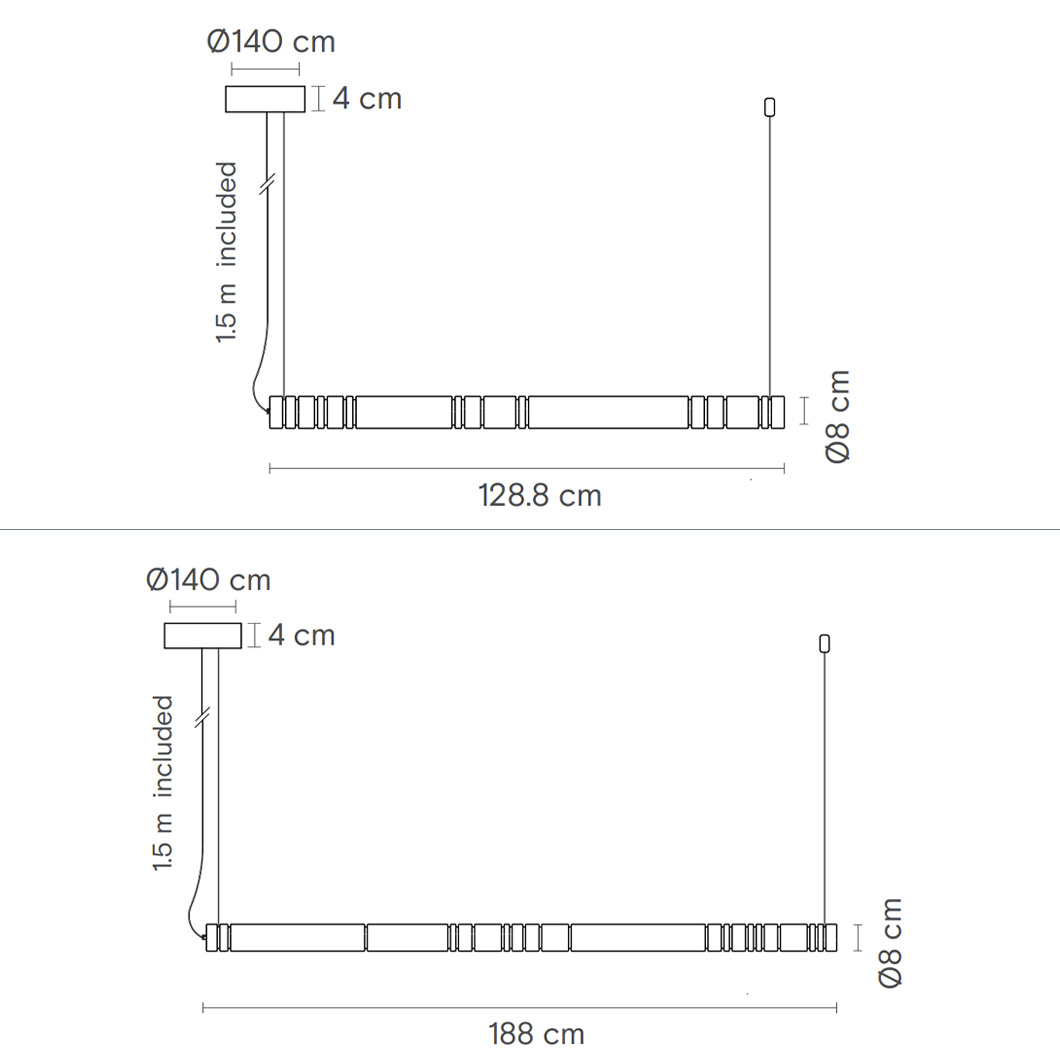 Bowie's understated elegance makes it an ideal focal point in modern residential or commercial areas. Available in 130cm and 190cm lengths, the cylindrical body measures 80mm in diameter. The linear drop light is an ultra-stylish addition to elevate a lounge or kitchen. Bowie's understated elegance makes it an ideal focal point in modern residential or commercial areas.