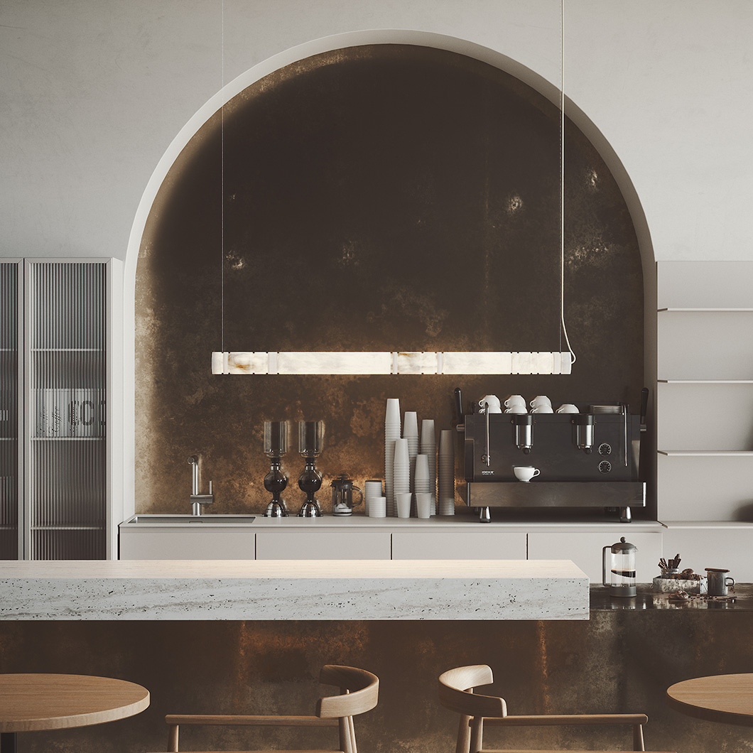 The Bowie Pendant by Robin is a sculptural luminaire, crafted from alabaster, 3D-printed caps, and a cream textile cable. Combining cutting-edge manufacturing with the natural beauty of alabaster, the sublime suspension light is a commanding presence in a contemporary interior. Bowie delivers high-performance LED lighting, casting a soft 3000K glow for a warm, inviting ambience.