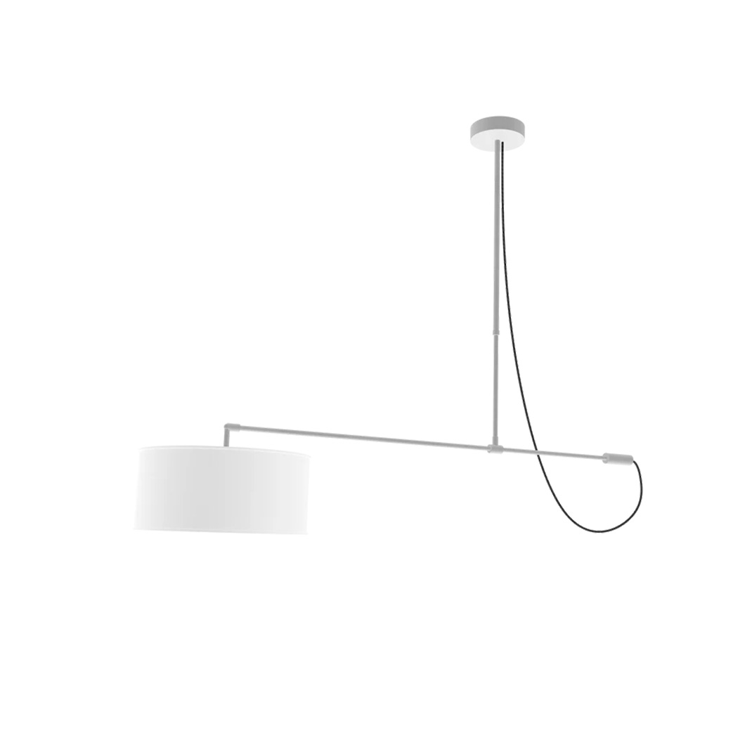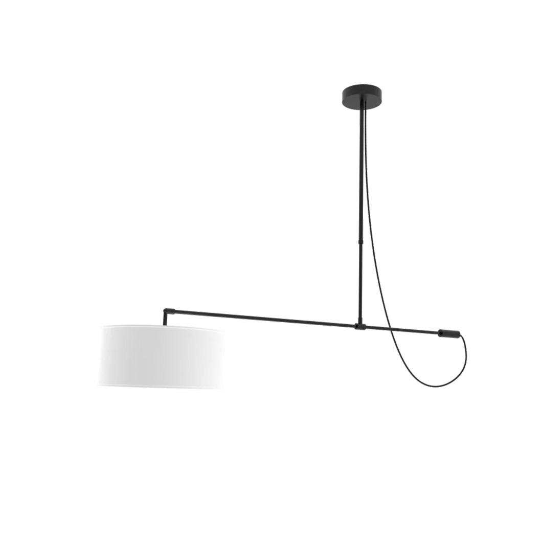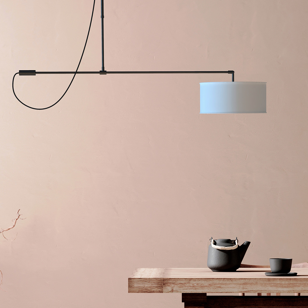 Raisa is made up of a white fabric shade and iron structure which is supported by a black textile cable. The sleek frame can be finished in matt black or matt white, maintaining a clean minimalistic look. Complementing a chic interior, the graceful suspension light casts a soft, serene glow over its surrounding décor.