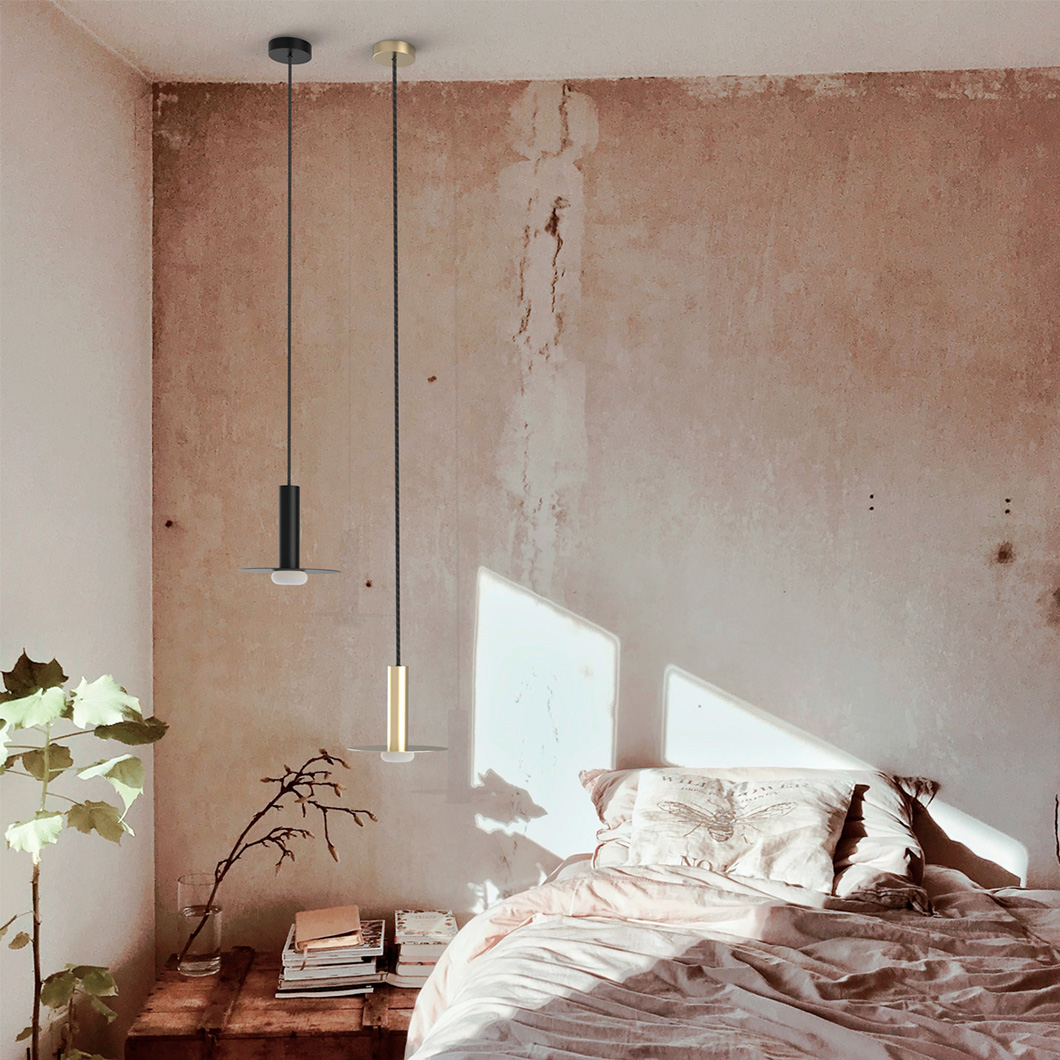 Reina is available in three chic finishes. Choose between an all-matt black version, a fully matt polished brass, or a mixture of the two with a matt black structure and matt polished brass disc. Reina exudes grace whether it is installed individually or in a small cluster.