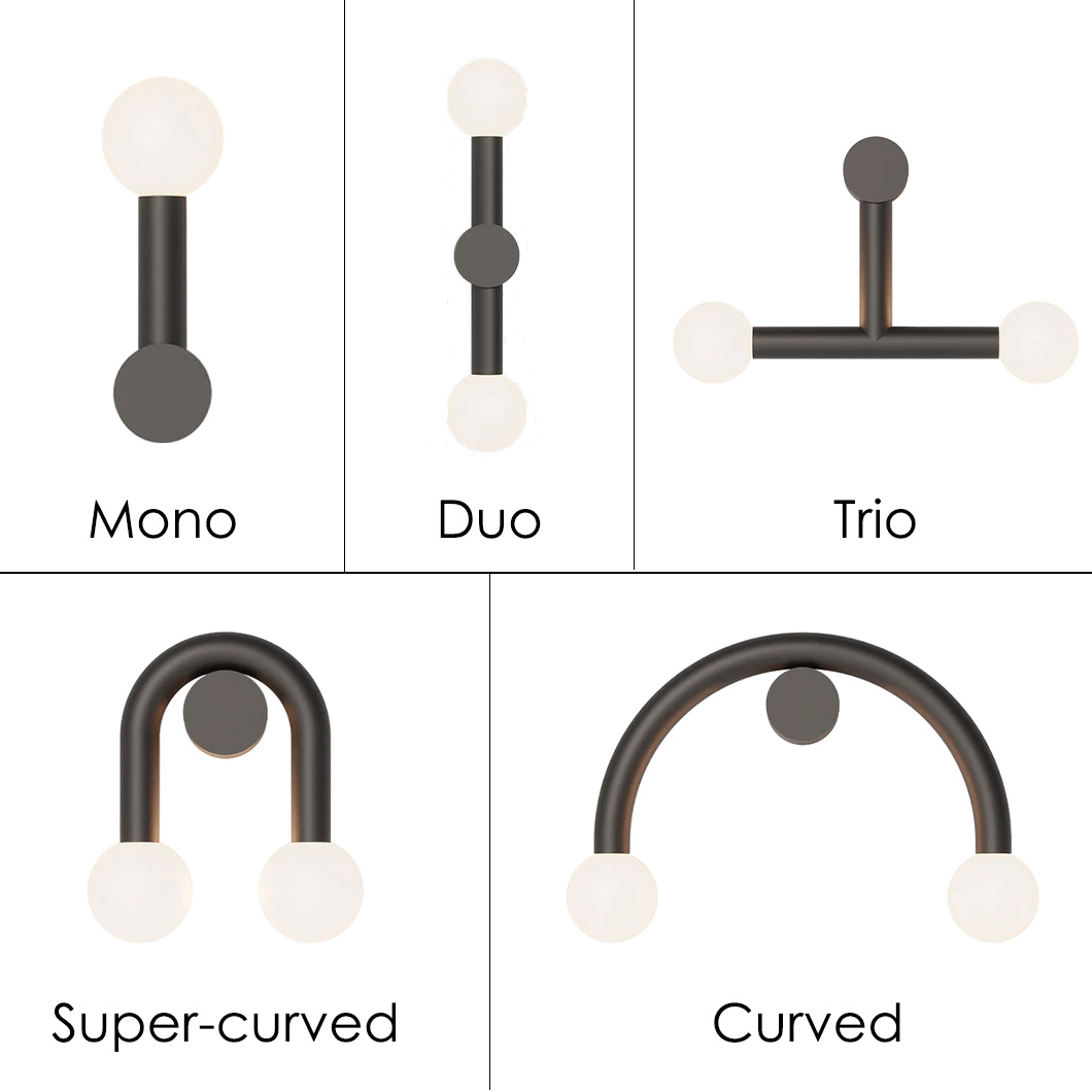 Crafted from iron, the sleek structure diffuses a soft, atmospheric glow from its opal glass globes. Rigoberta comes in five different models, each offering its own distinctive look. Choose between Mono, Duo, Trio, Curved, or Super-curved, or combine the diverse variations to create a striking accentual feature. Offered in matt black or matt white, these stylish finishes preserve the simple and elegant design of the fixtures, ensuring they complement any modern interior.