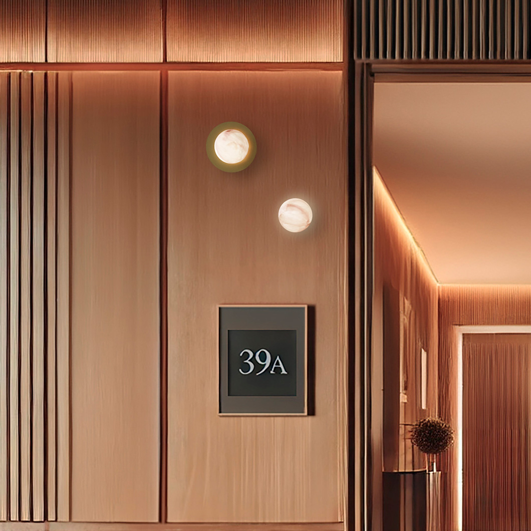 Boasting a contemporary look the Royal Wall Light by Robin captures a simply sophisticated style that effortlessly elevates a lavish interior. A petite alabaster sphere mounted on a matt polished brass base, this luxury lamp is a complementary feature in modern residential or commercial spaces.