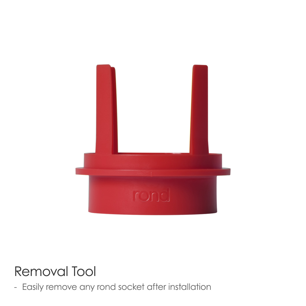 The all-new rond socket can be removed from its kit after installation with the red removal tool. This allows the wires and connections to be accessible at any time.
