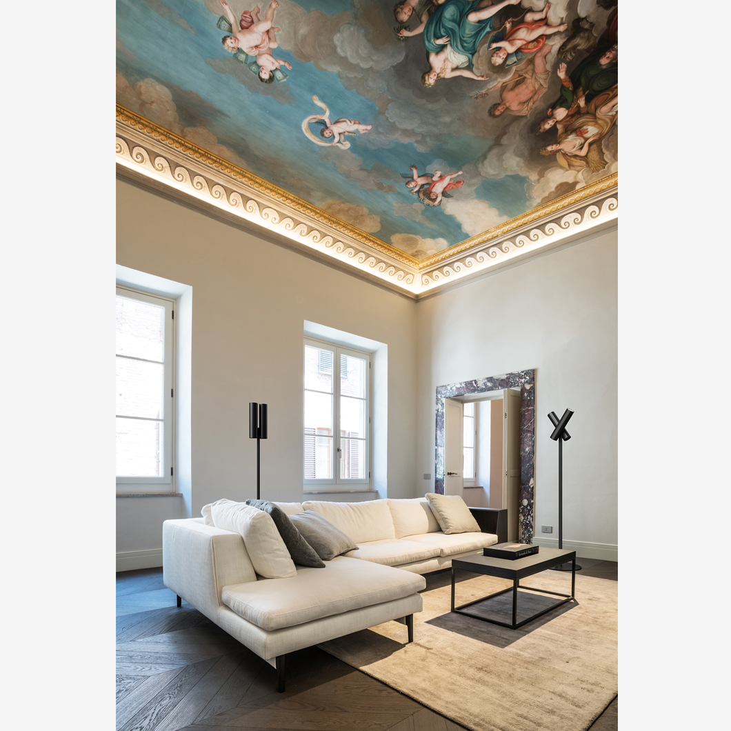 Tobu offers a simple and versatile lighting solution for any space. It's dual beam capacity allows Tobu to be angled and give you the perfect lighiting solution. Able to fit in perfectly in both classical and contemporary spaces, this floor lamp provides a stylish and clean look. Tobu is ideal for living spaces, illuminating artwork and museums or galleries. LED power, durable aluminium frame and beautiful Italian design combine to create a dynamic piece. Designer Tommaso Tommasi took inspiration from the iconic Olympic torch for the Tobu's shape, in recognition of the 2026 Winter Olympics being awarded to Milan and Cortina. Through this peice, Rotalina are able to deepen their connection to their home in Northern Italy.