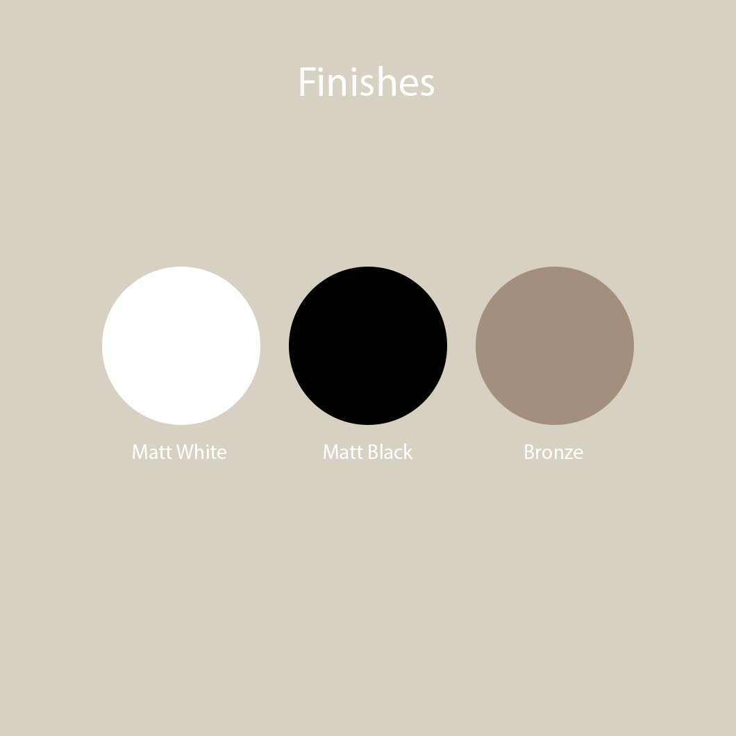 Finish: Matt White, Matt Black or Bronze