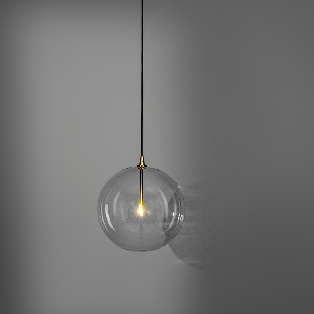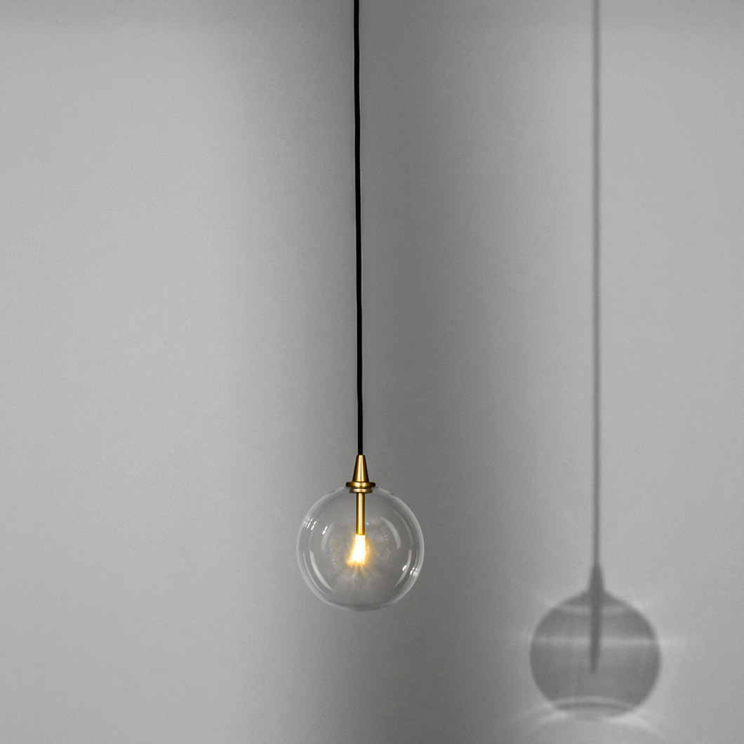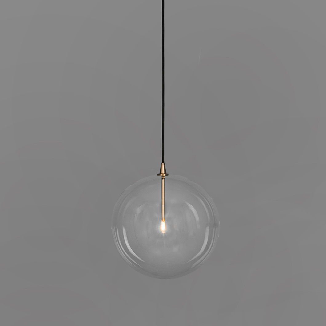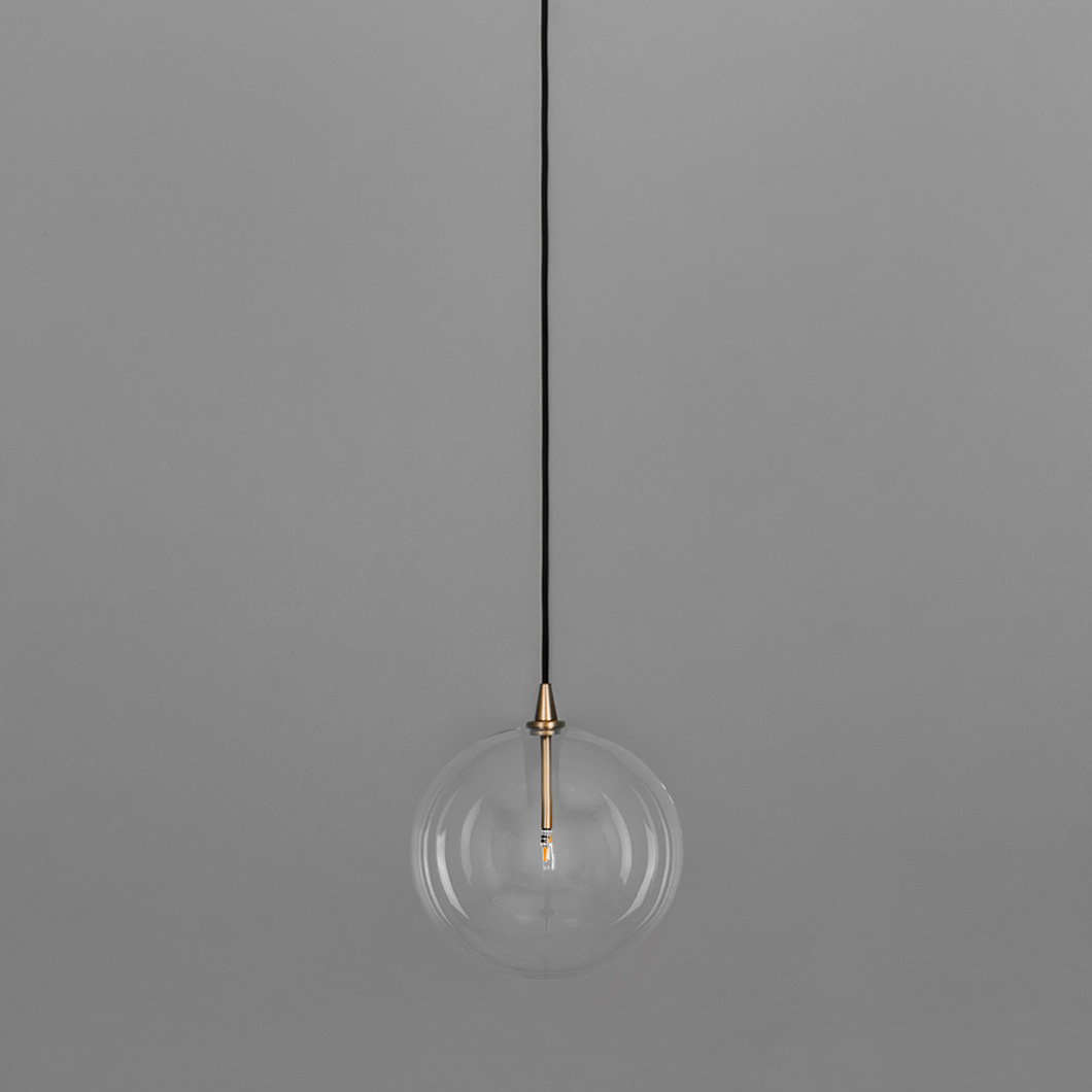 Minimalist elegance and timeless appeal define the Glass Globe Pendant by Schwung. This modern suspension light expresses its simple design through its singular clear glass bubble and linear structure. Mounted by a small round canopy, the Glass Globe floats weightlessly, suspended by an elongated textile cable.