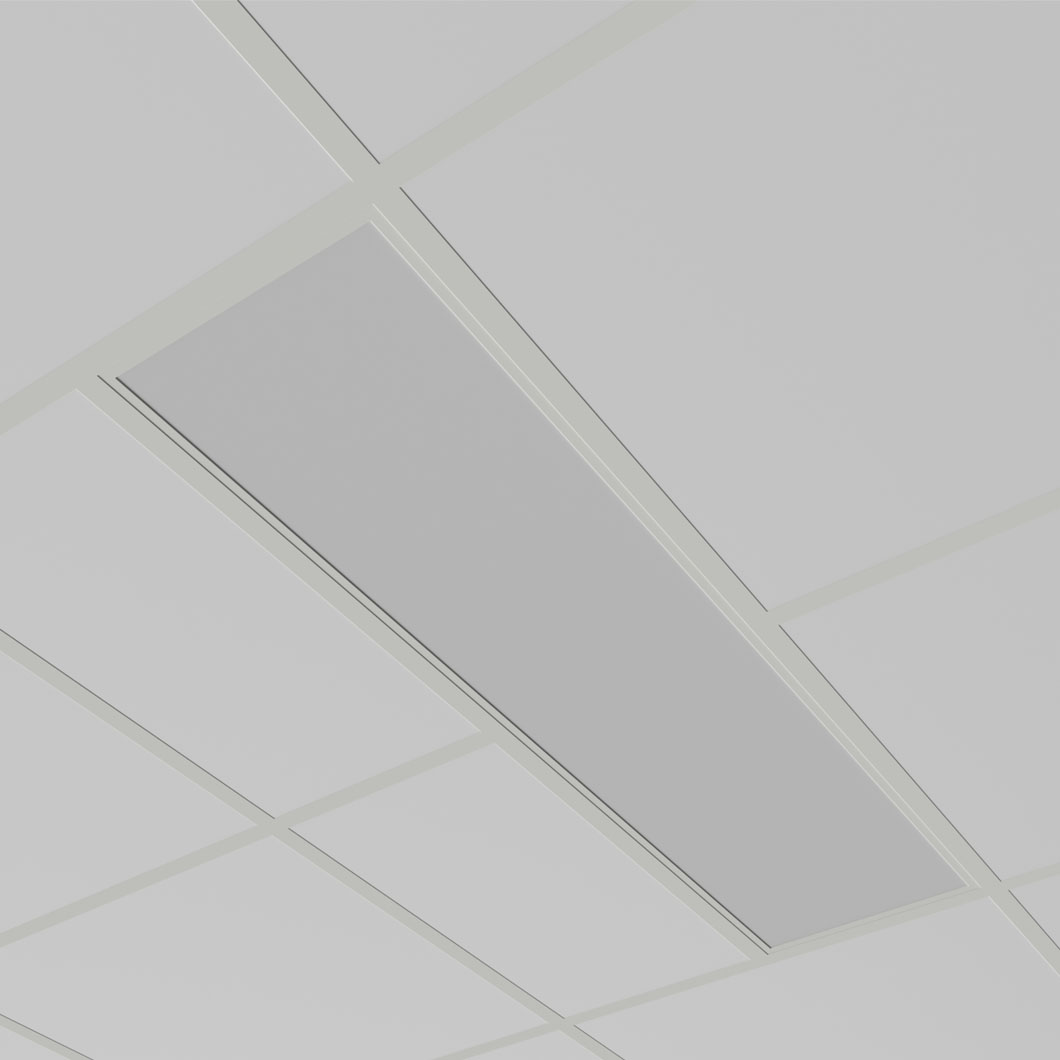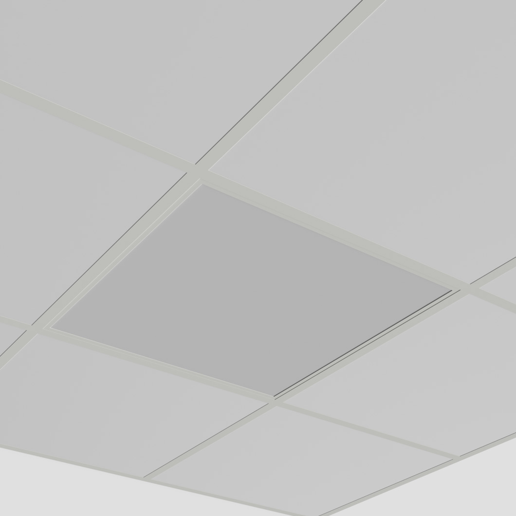 Available in 2 sizes, 600 x 600mm and 1200 x 300mm. Both versions are equipped with a low flicker effect LED driver. On/off or DALI dimmable.
