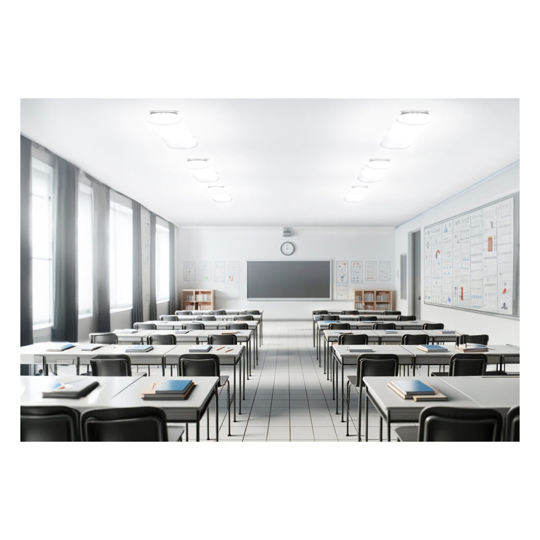 Perfect for all classrooms, lecture halls, assembly halls, offices and production workplaces where it is important to support cognitive performance, attention, low error rate, concentration, alertness, vitality, and user health.