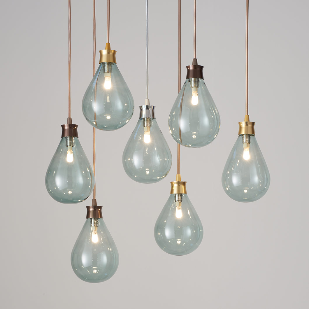 The delicate, colourful Cintola Pendant combines a handblown glass diffuser with an anodised aluminium body. Individually it makes a subtle statement in the bedroom or hallway, or, clustered together with other Cintola Pendants, it forms an installation piece over a dining room coffee table.