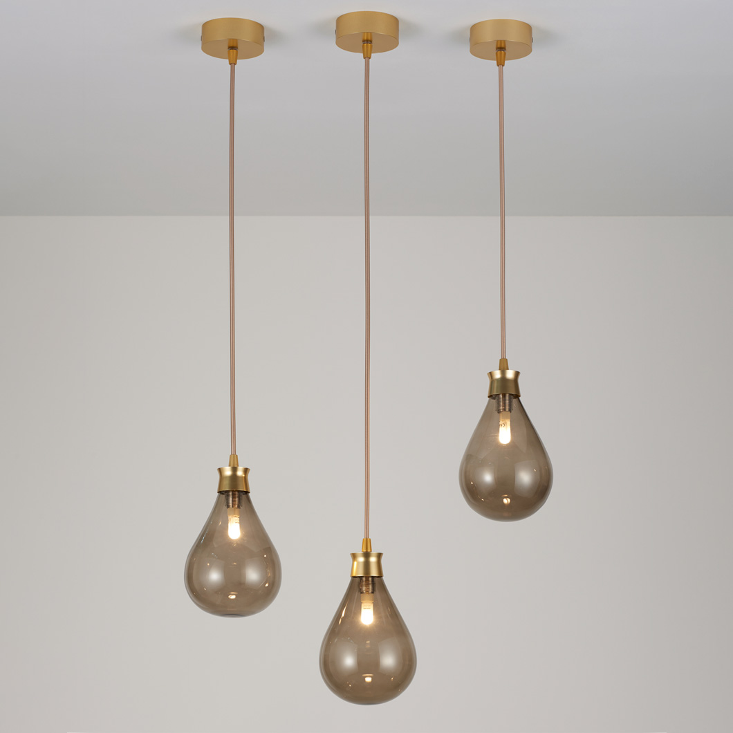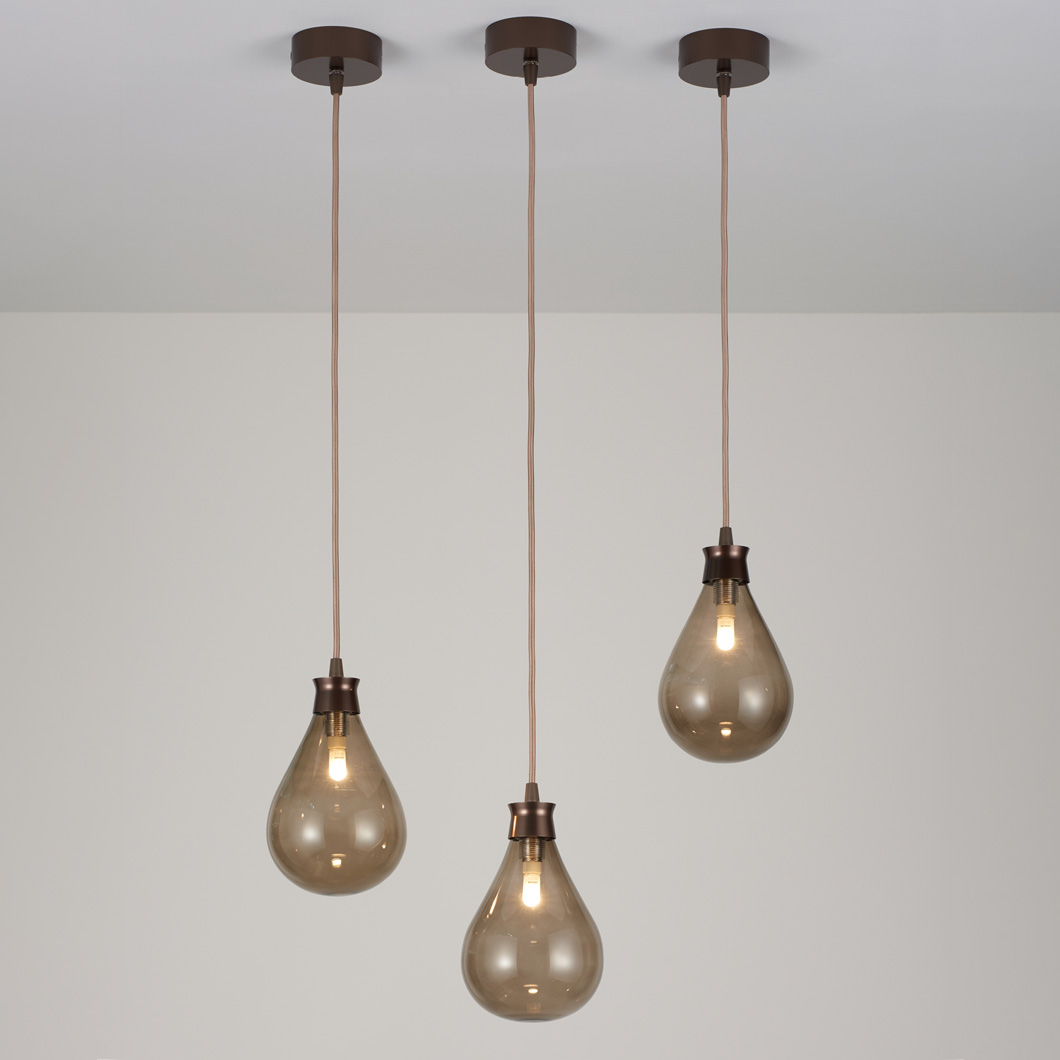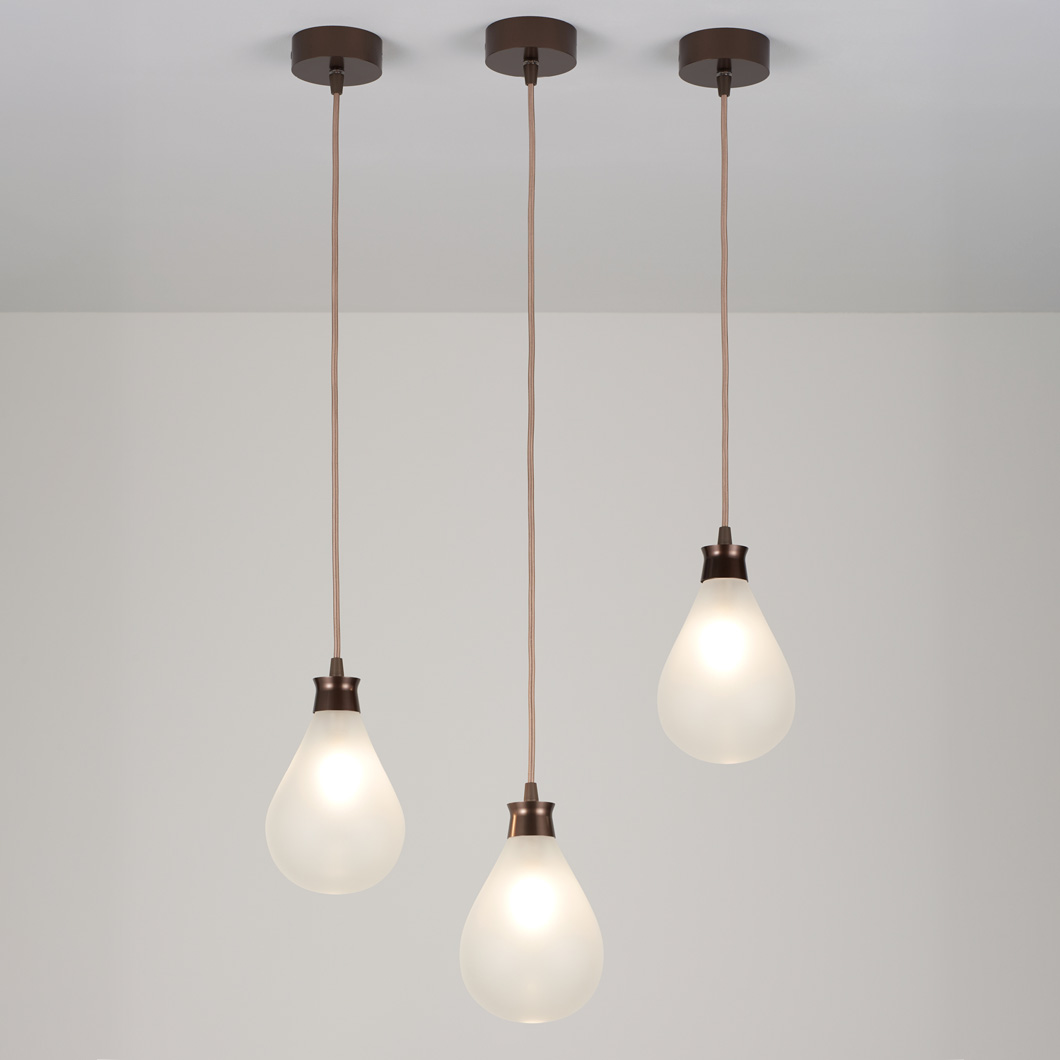 Metal in polished aluminium, satin bronze and satin gold. The pendant glass is available in frosted, smoke grey or bronze. Other colours are also available on request, so please call us if you require an alternative finish for your diffuser.