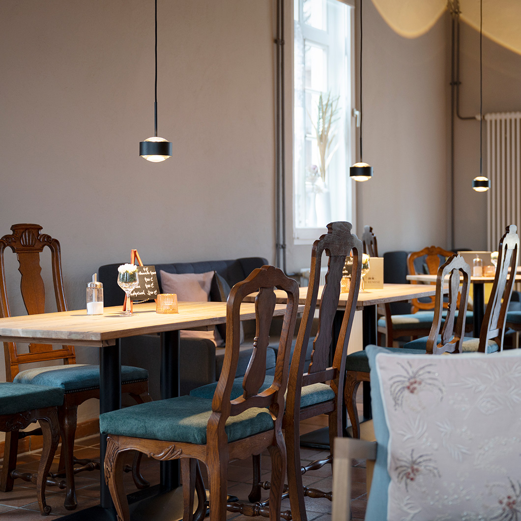 With 6 metallic finishes to choose from, the Puk Mini Drop Pendant is sure to match the style of any interior space. From classic matt white or black options, to traditional chrome and matt chrome versions, or even a unique matt anthracite or nickel. Easily integrate this modern drop light suspended over a dining table, whether in a commercial restaurant setting or home kitchen.