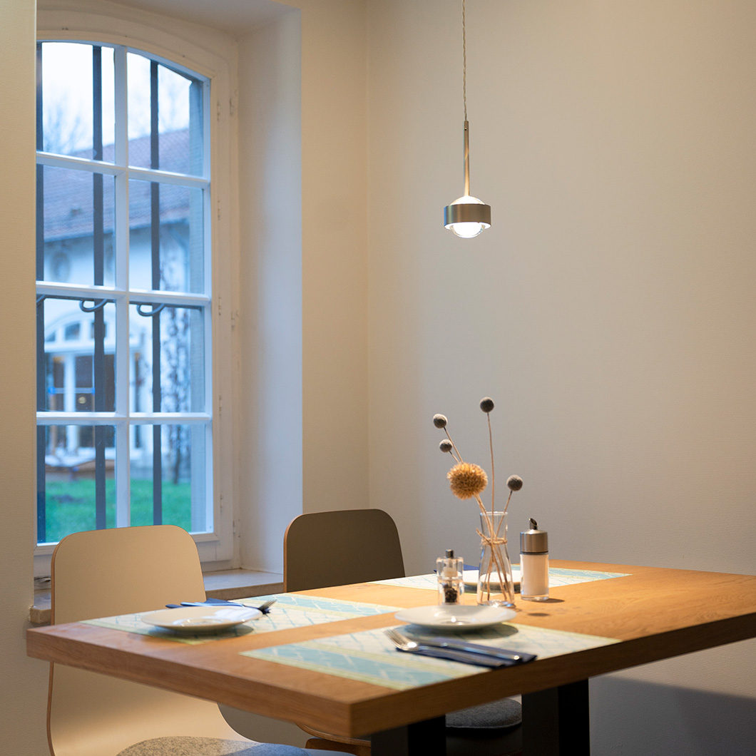Choose between a clear or matt lens for the underside of the lamp head depending on the desired ambience. A clear lens offers sharp, defined light that enhances the drama of the dual up and down lighting. Beneficial for use as the solo light source in a room, the clear lens helps the Puk Mini Drop to brighten up a grand entryway to welcome guests into your home. On the other hand, a matt lens offers a softer, more cosy feel to the drop light. This is perfect for creating a warm atmosphere in a contemporary lounge for a relaxing night with the family.