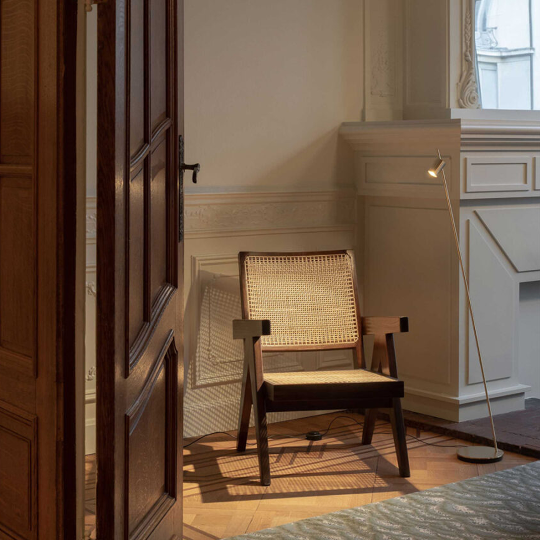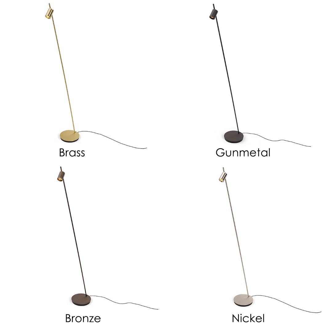 The Aude Floor Lamp can be finished in 4 sleek metallic colours: brass, gunmetal, bronze, or nickel. Also, for the LED light source, choose between a warm white 2700K or a neutral home white 3000K. As well as the versatile appearance options, Aude also has a 359° rotational lamp head, allowing you to direct light where desired.