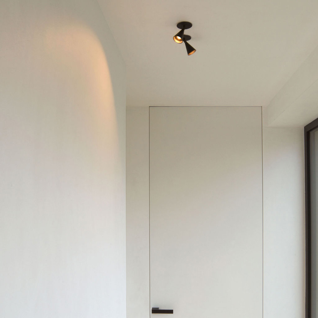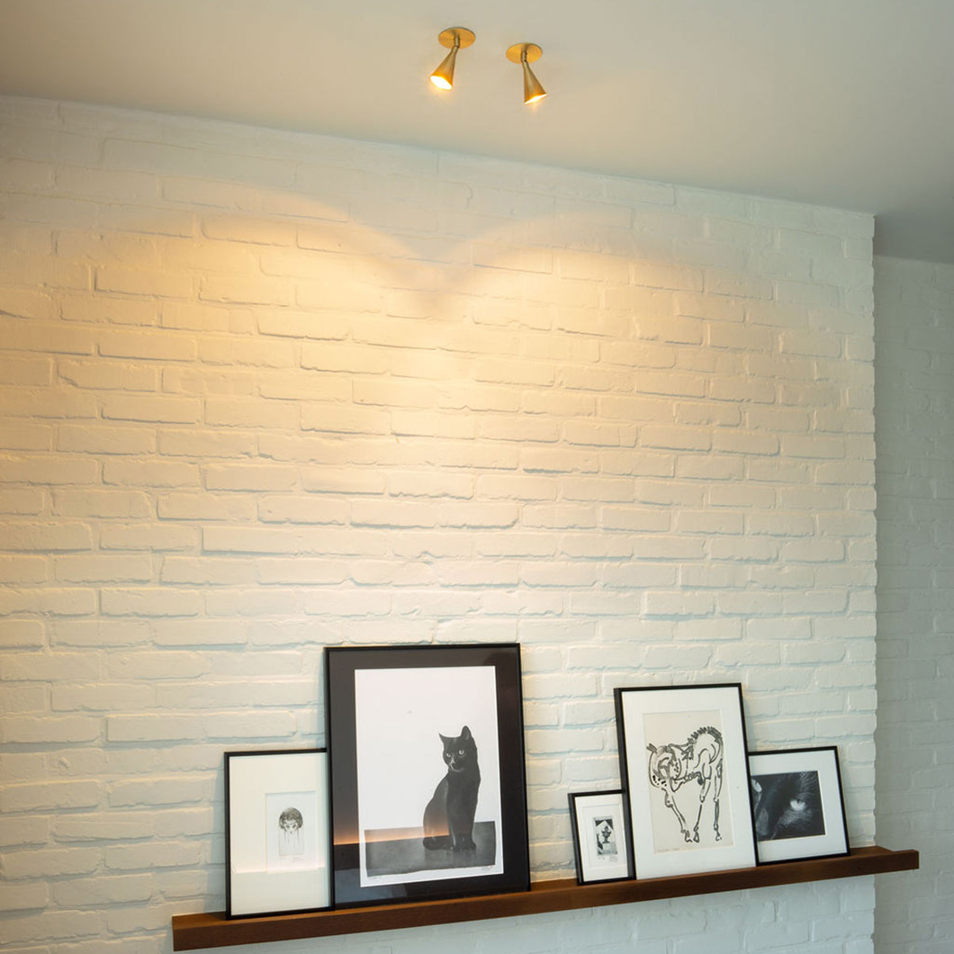 The award-winning Austere collection by Trizo21 is unique and subtle with a prestigious aura, personified by its tall sleek shape. The fixture can be installed in a variety of rooms through its versatile design, including kitchens for task lighting, offices as a desk lamp or even to aid reading in your living room. Suitable for both traditional and modern interior schemes. The adjustable ceiling version can be tilted to change the direction of light. Choose between 4 stylish finishes: white, black, brass and gunmetal – each providing a different atmospheric effect. Equipped with energy efficient integral LED.