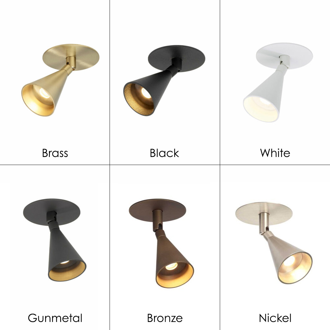 The award-winning Austere collection by Trizo21 is unique and subtle with a prestigious aura, personified by its tall, sleek shape. The fixture can be installed in a variety of rooms through its versatile design, including kitchens for task lighting, offices as a desk lamp, or even to aid reading in your living room. Suitable for both traditional and modern interior schemes. The adjustable ceiling version can be tilted to change the direction of light. Choose between 6 stylish finishes: white, black, brass, gunmetal, bronze, and nickel – each providing a different atmospheric effect. Equipped with an energy-efficient integral LED.
