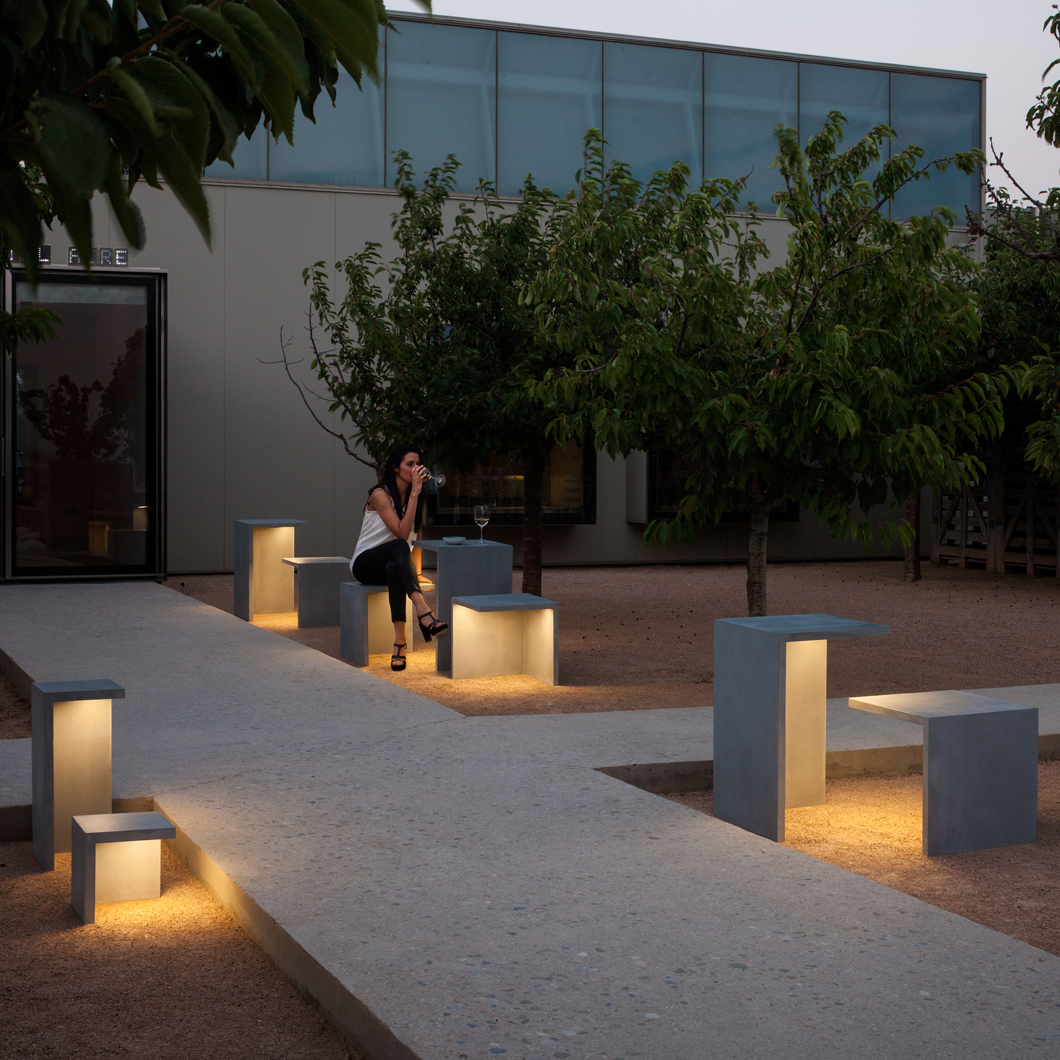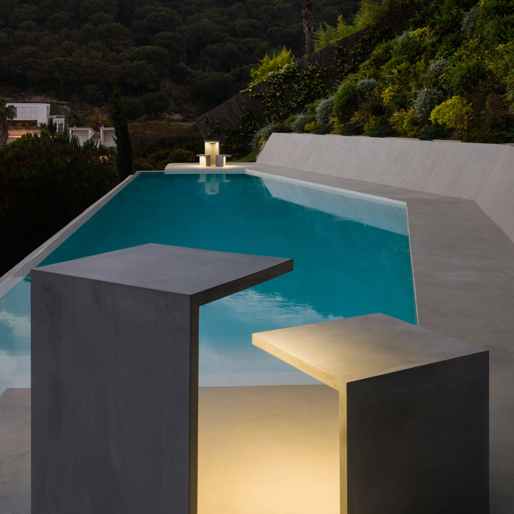 The Vibia Empty is an outdoor lamp that boasts different functions, where matter and light are integrated in a single body. Empty is a sculpture by day and will surprise you with the light it gives off at night. Designed by Xuclà. The light is finished in concrete polymer grey or graphite black. The light is available in four sizes; small (4135), medium (4136), large (4125) or x-large (4130).