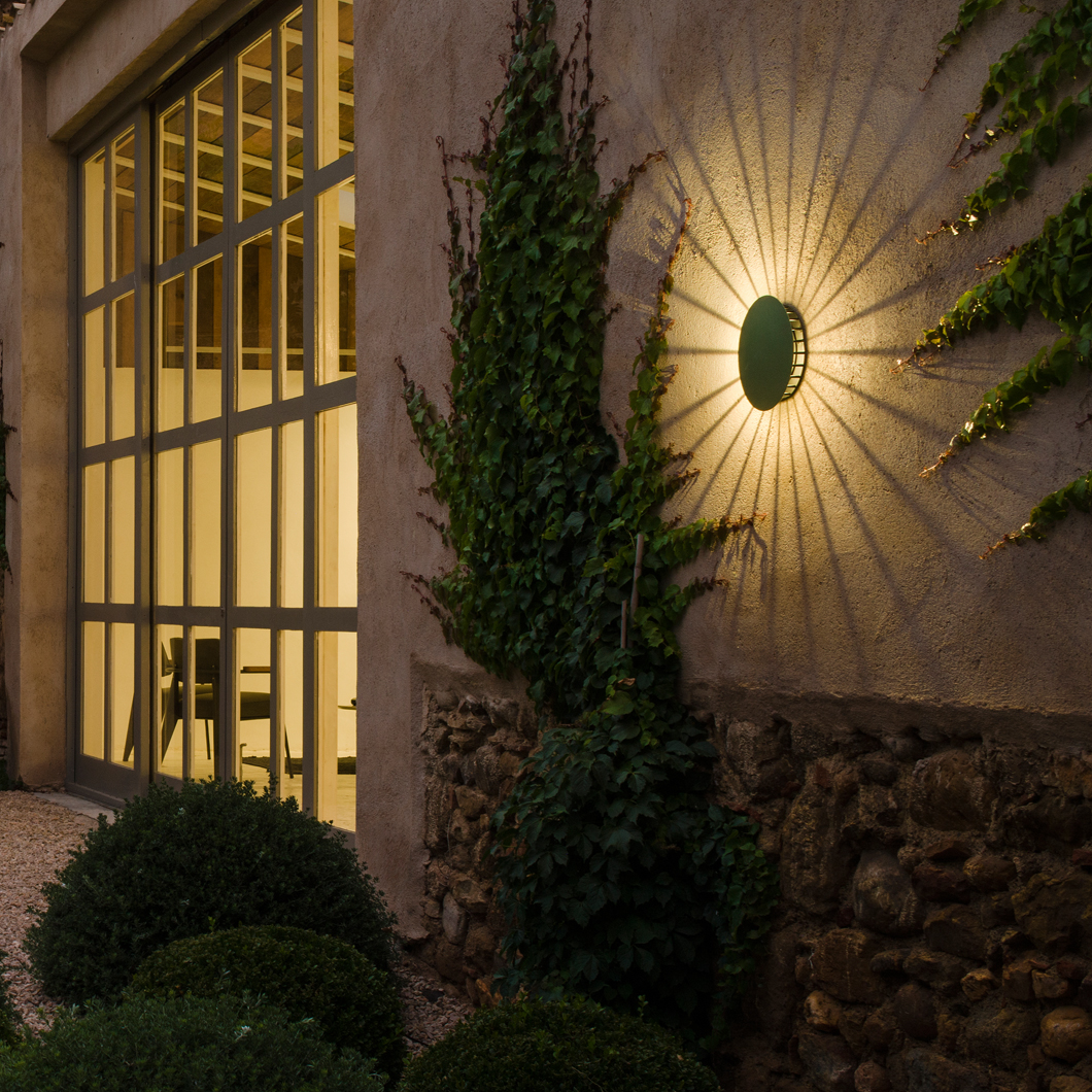 The Vibia Meridiano (4720) is an outdoor wall light installed on a surface. Designed by Jordi Vilardell & Meritxell Vidal. This wall light is characterised by its magical luminous effect of light and shadow over whatever surface it is installed. The Meridiano wall light is equipped with an LED light source and is ideal for exterior use. As with the rest of the outdoor collection, the Meridiano is available in two finishes: matt lacquered khaki or matt lacquered off-white. Supplied with a 2700K or 3500K LED.