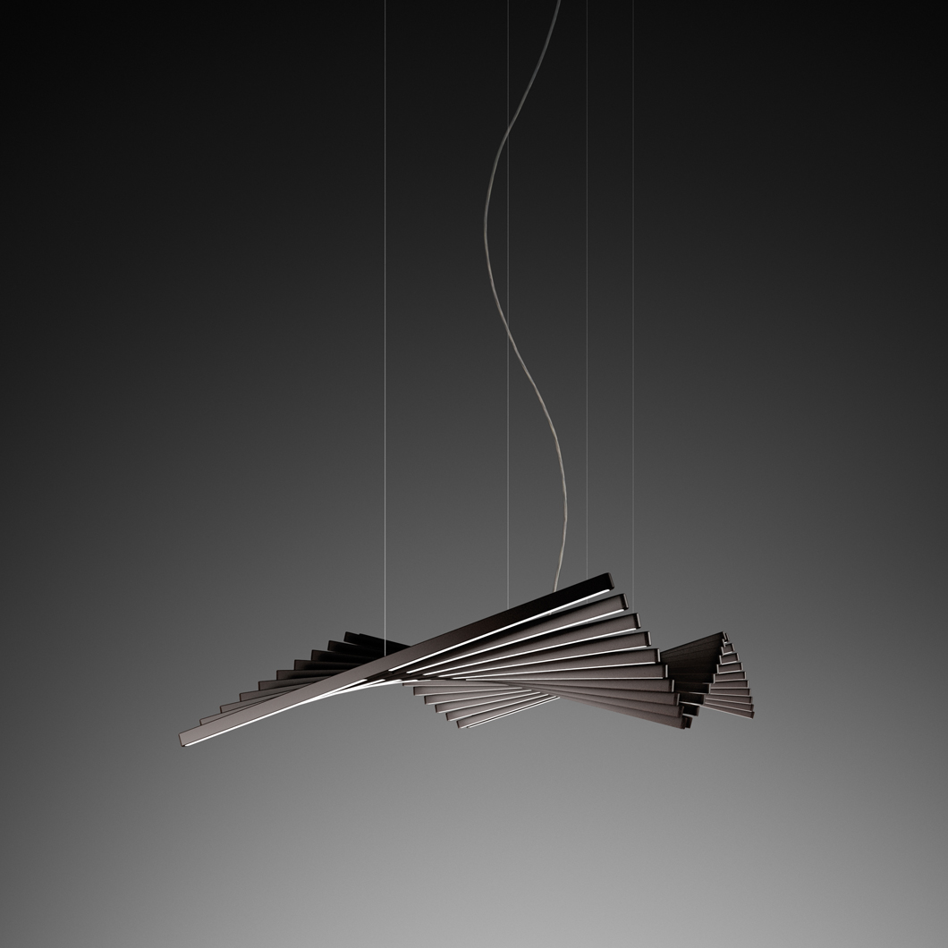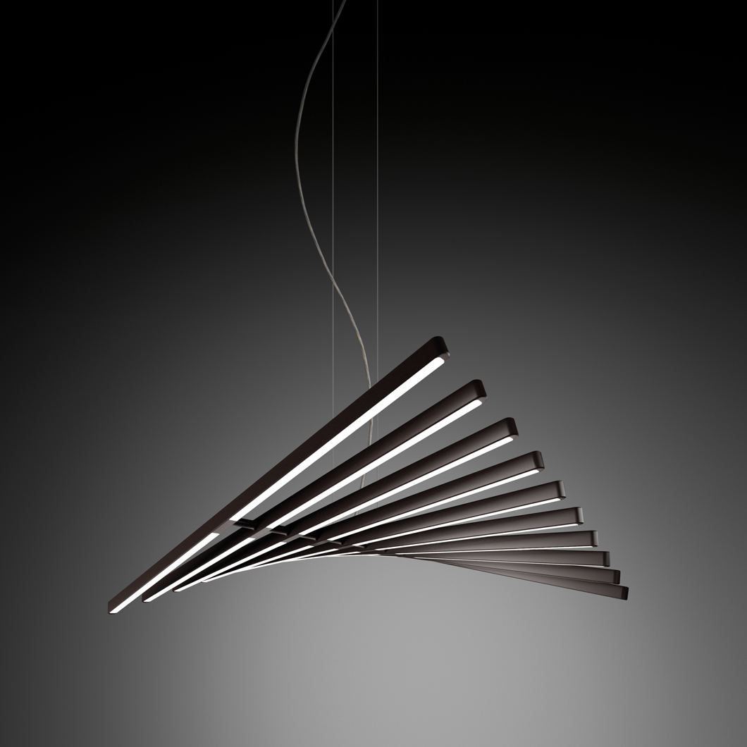 The Vibia Rhythm is a pendant lamp with a groundbreaking design, allowing infinite configurations thanks to 10 modules of horizontal, long stickers. Designed by Arik Levy, it is available in chocolate or off-white finishes. The light is available in three sizes: small (2120), medium (2121) or large (2122).
