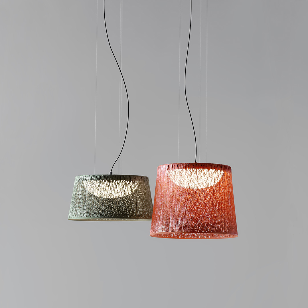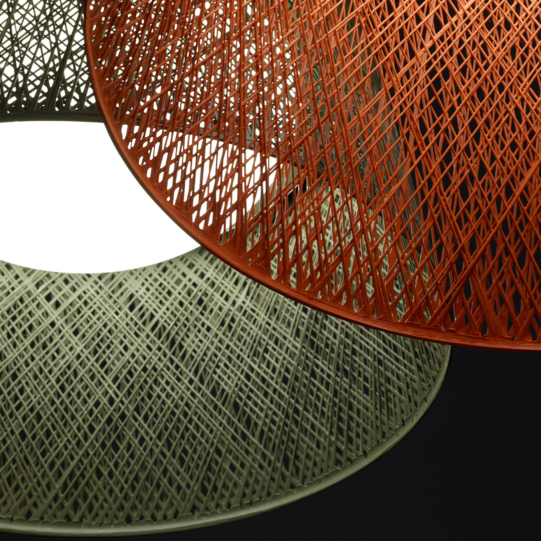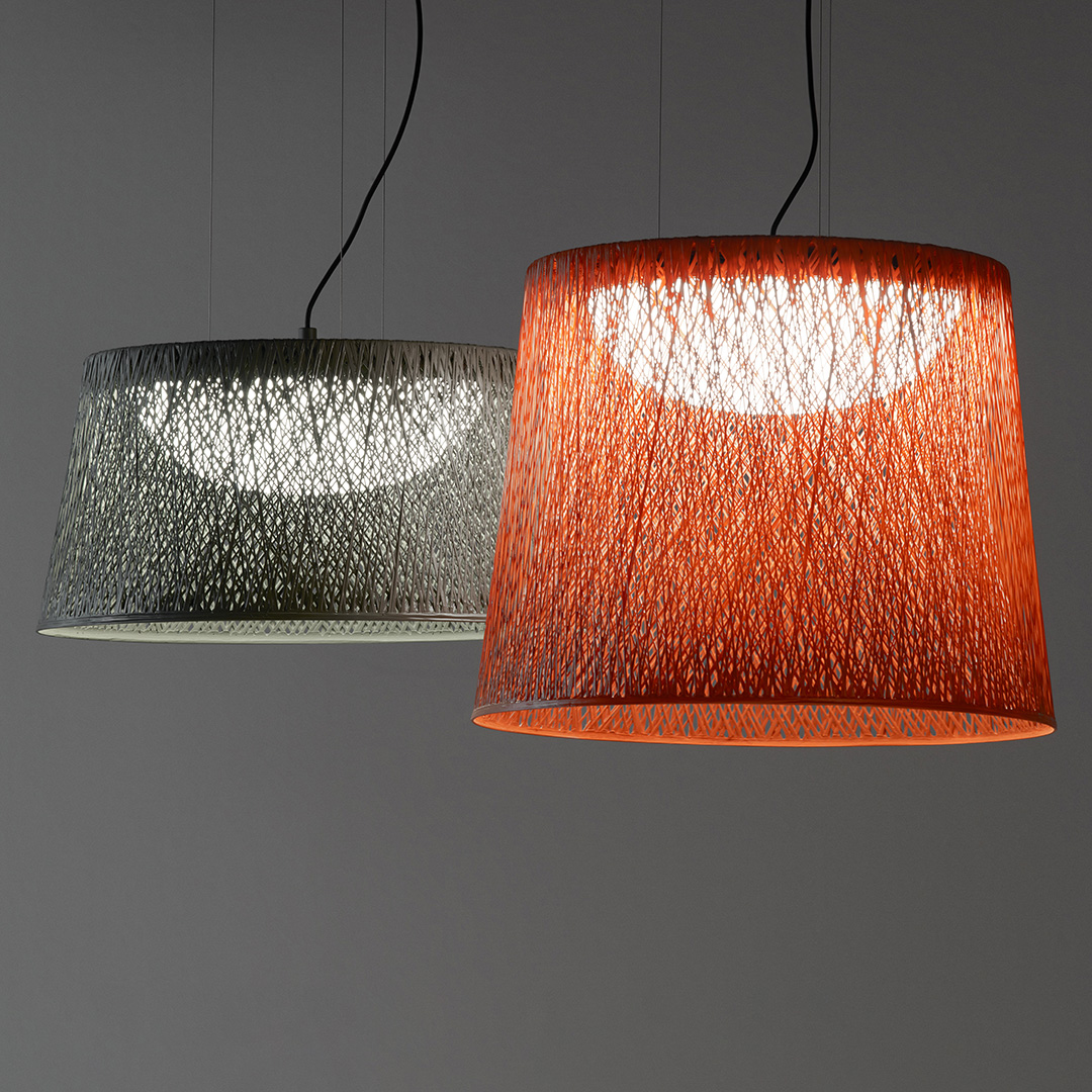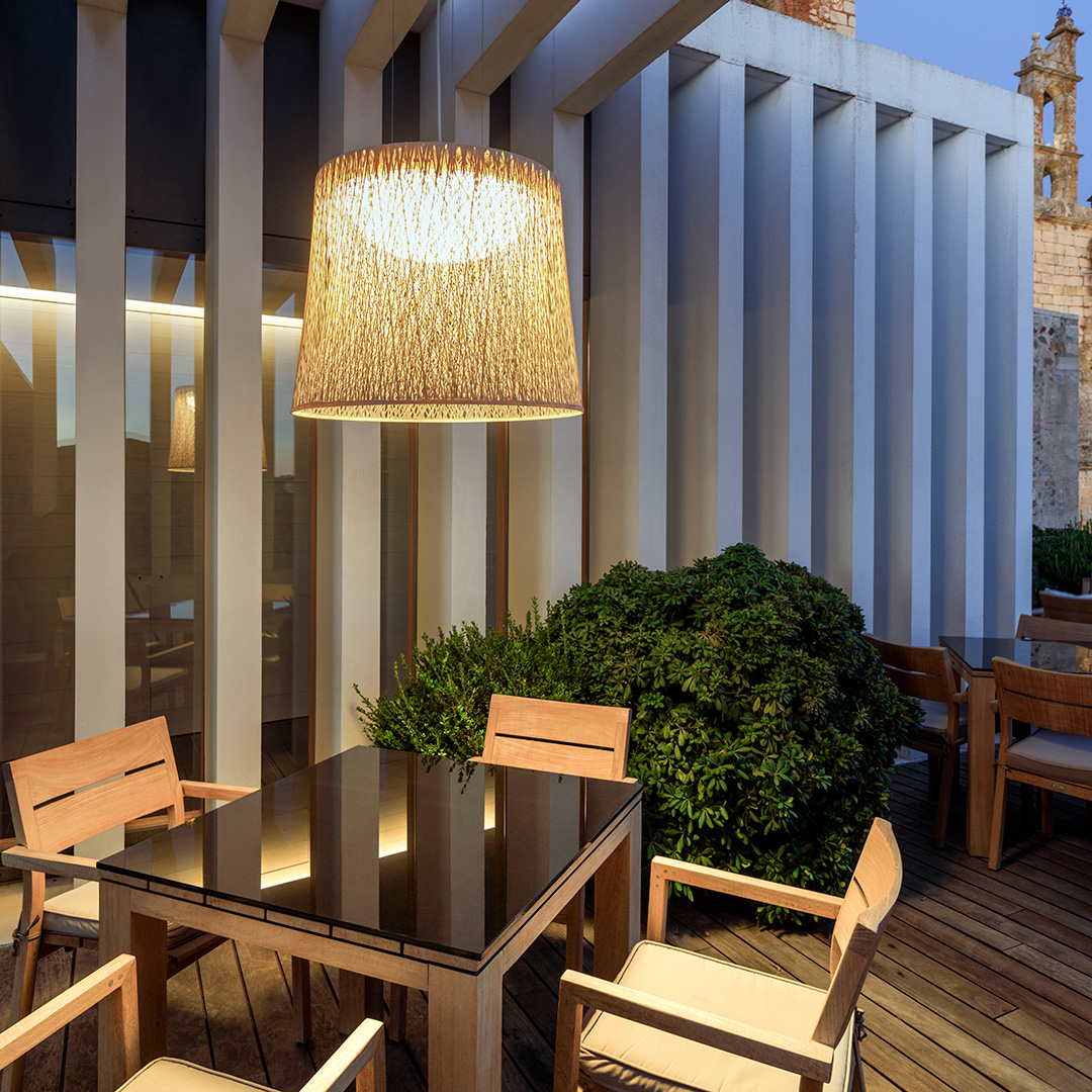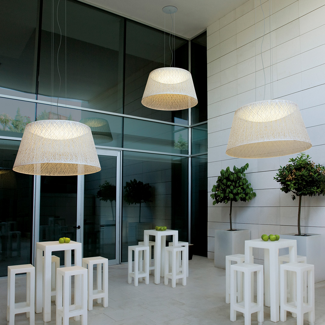 The Vibia Wind is a hanging lamp for outdoor use. Designed by Jordi Vilardell, it is available in sand, ocre red, and green finishes. The choice of material, glass fibre, which is produced industrially through the innovative use of filament winding technology, gives this collection an appearance that unites technology with tradition. The light is available in two sizes: small (4072) or medium (4077).