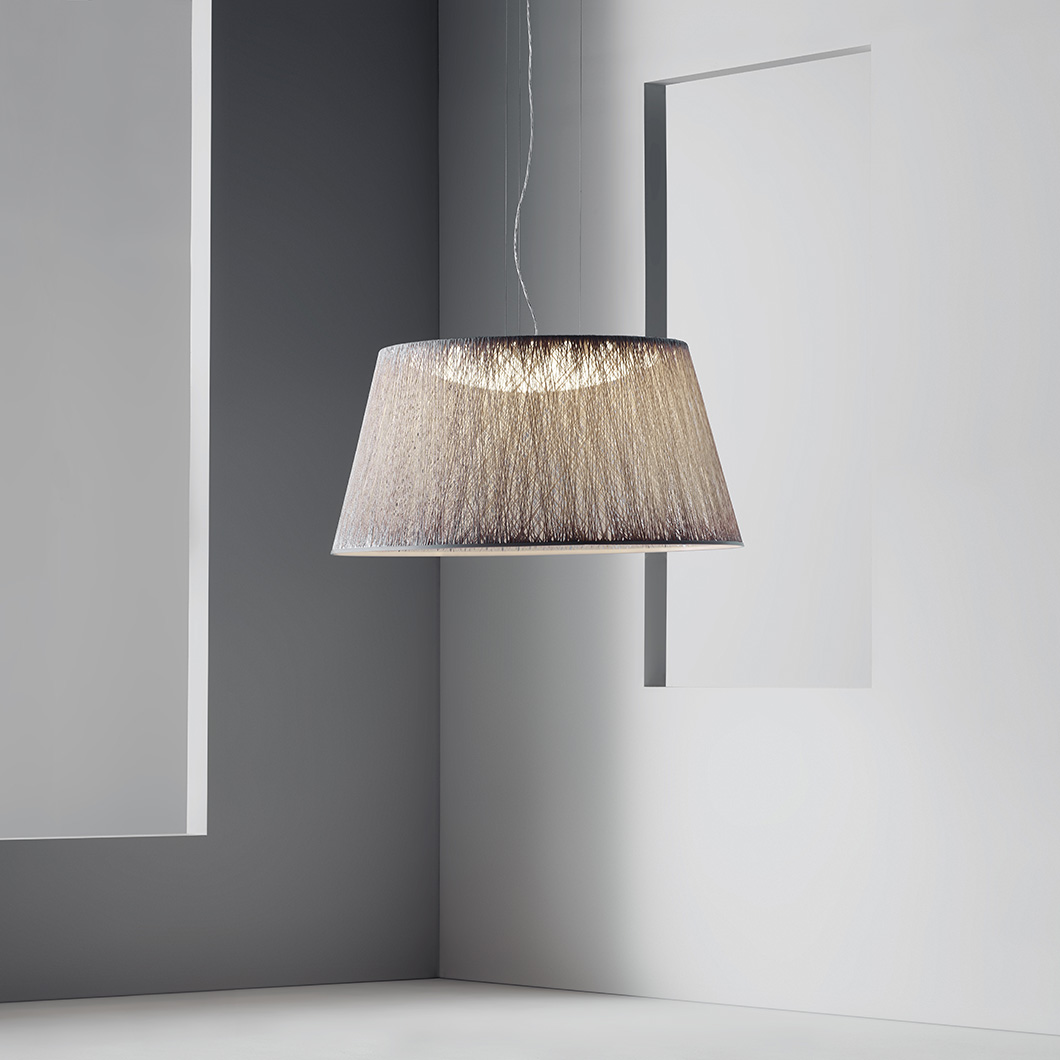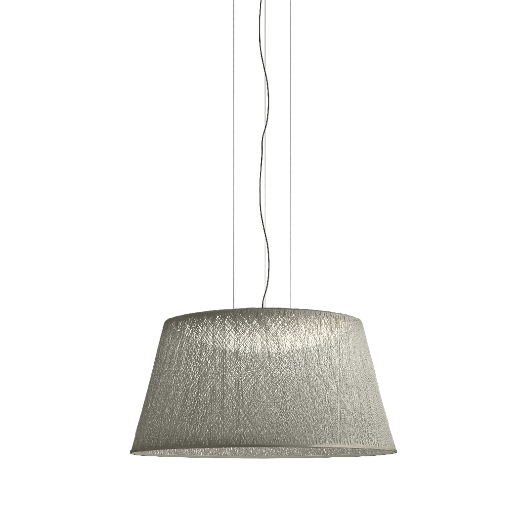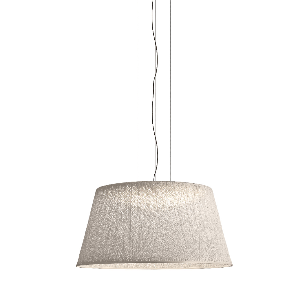 The Vibia Wind (4078) is a large interior hanging lamp. Designed by Jordi Vilardell, it is available in sand, green, and ocre red. The choice of a material, glass fibre, which is produced industrially through innovative filament winding technology, gives this collection an appearance that unites technology with tradition.