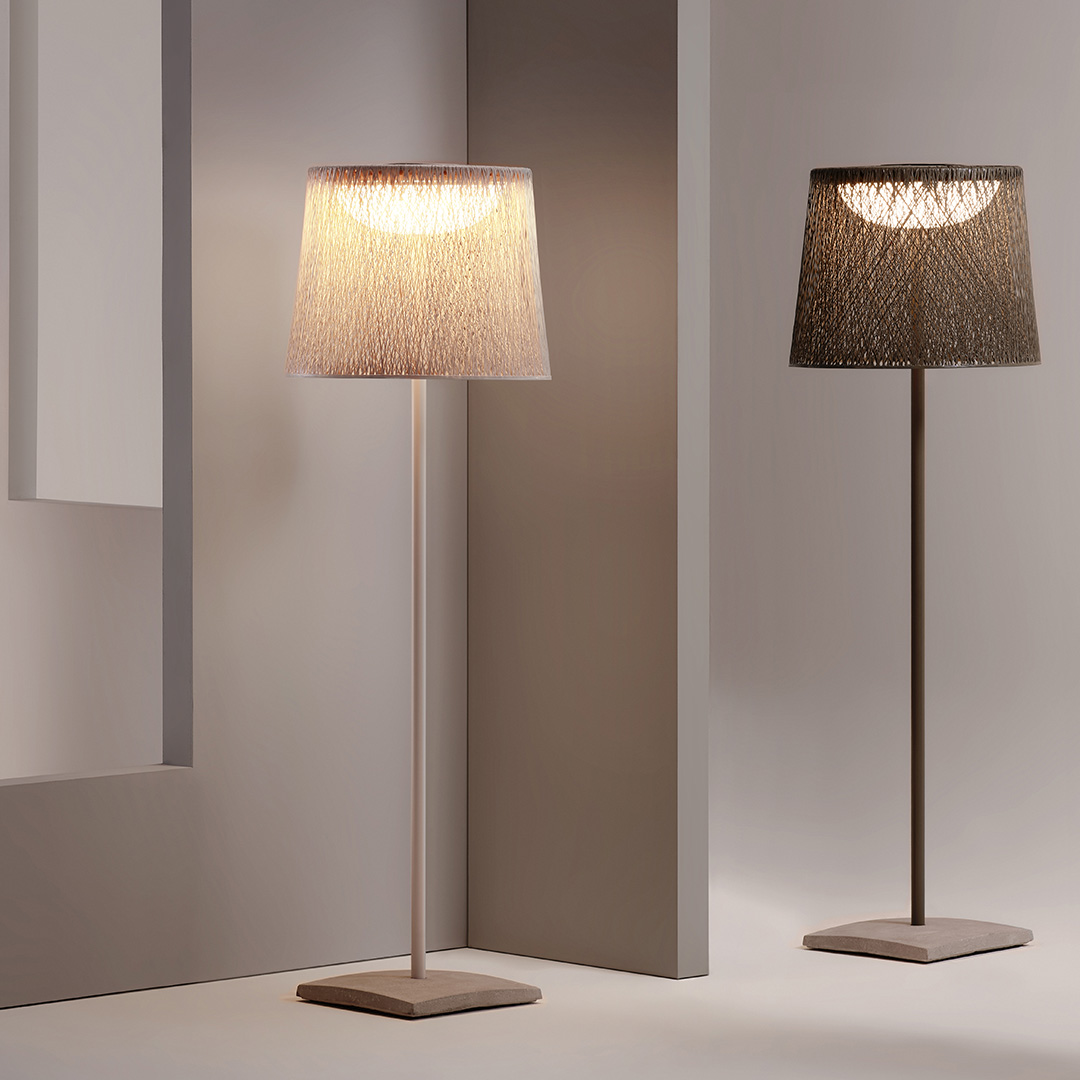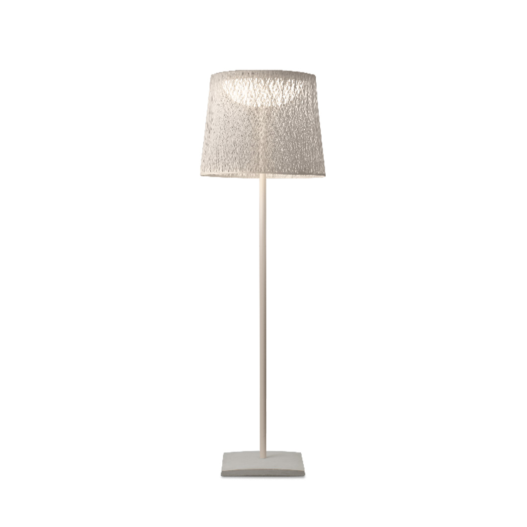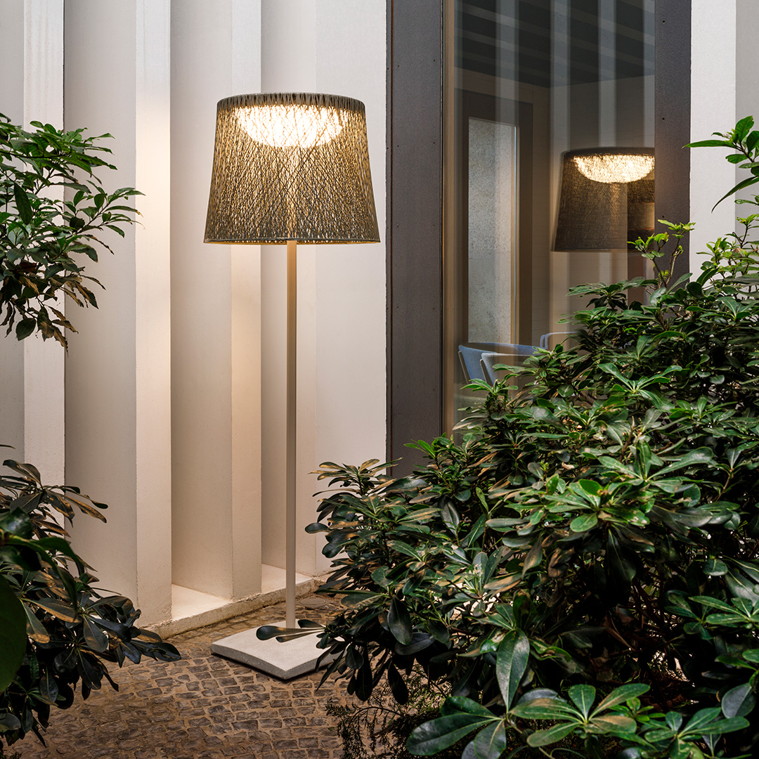The Vibia Wind Slim (4057) LED floor lamp for outdoor use. Designed by Jordi Vilardell, it is available in sand, ocre red, or green finish options. The choice of material, glass fibre, which is produced industrially through the innovative use of filament winding technology, gives this collection an appearance that unites technology with tradition. Integral LED & driver included.