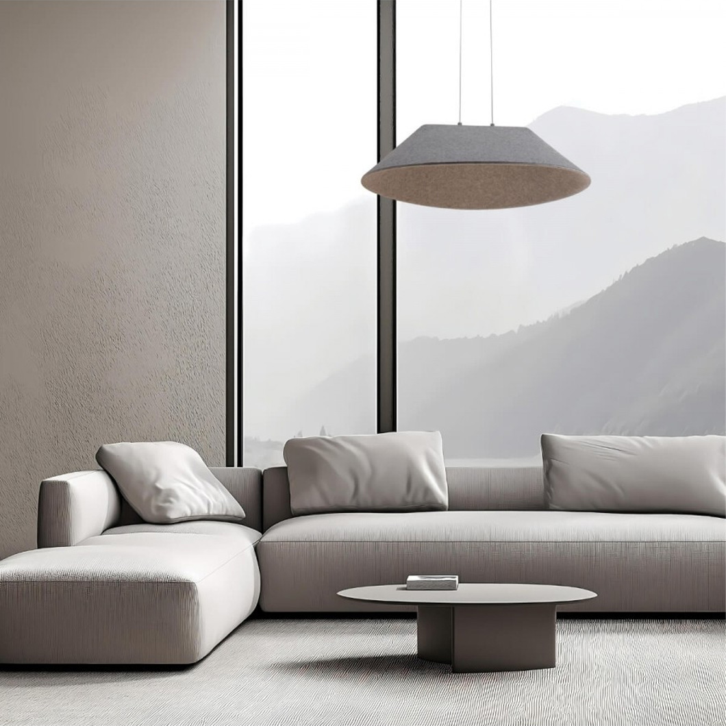 Prioritising high-performance illumination, as well as visual and acoustic comfort, the 23173 Pendant by Zambelis is ideal for large open spaces such as offices, restaurants, or hotels. Presenting a minimalist style to match a modern interior, the suspension light features a curved, triangular shade made with integrated acoustic panels. The grey-finished material helps to enhance sound quality and reduce noise to create a calm, comfortable atmosphere.