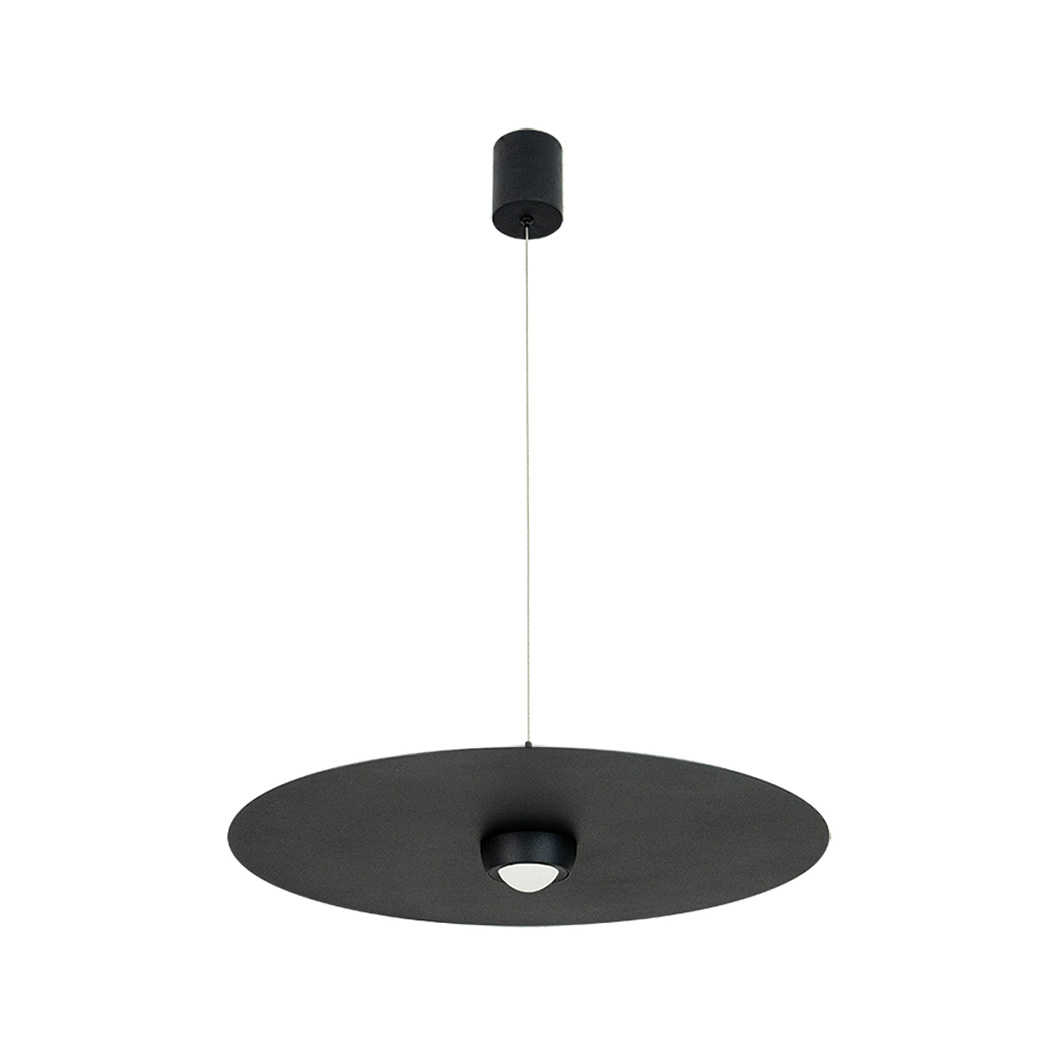 Blending clean, minimalist design with modern performance, the 2587 Pendant by Zambelis offers subtle luxury to elevate any interior. The elegant suspension light, finished in sandy black, features a large circular metal disc at Ø550mm with a central glass diffuser. Housing a 21W LED light source, the sophisticated drop light provides a soft, 3000K glow that enhances the ambience in a contemporary space.